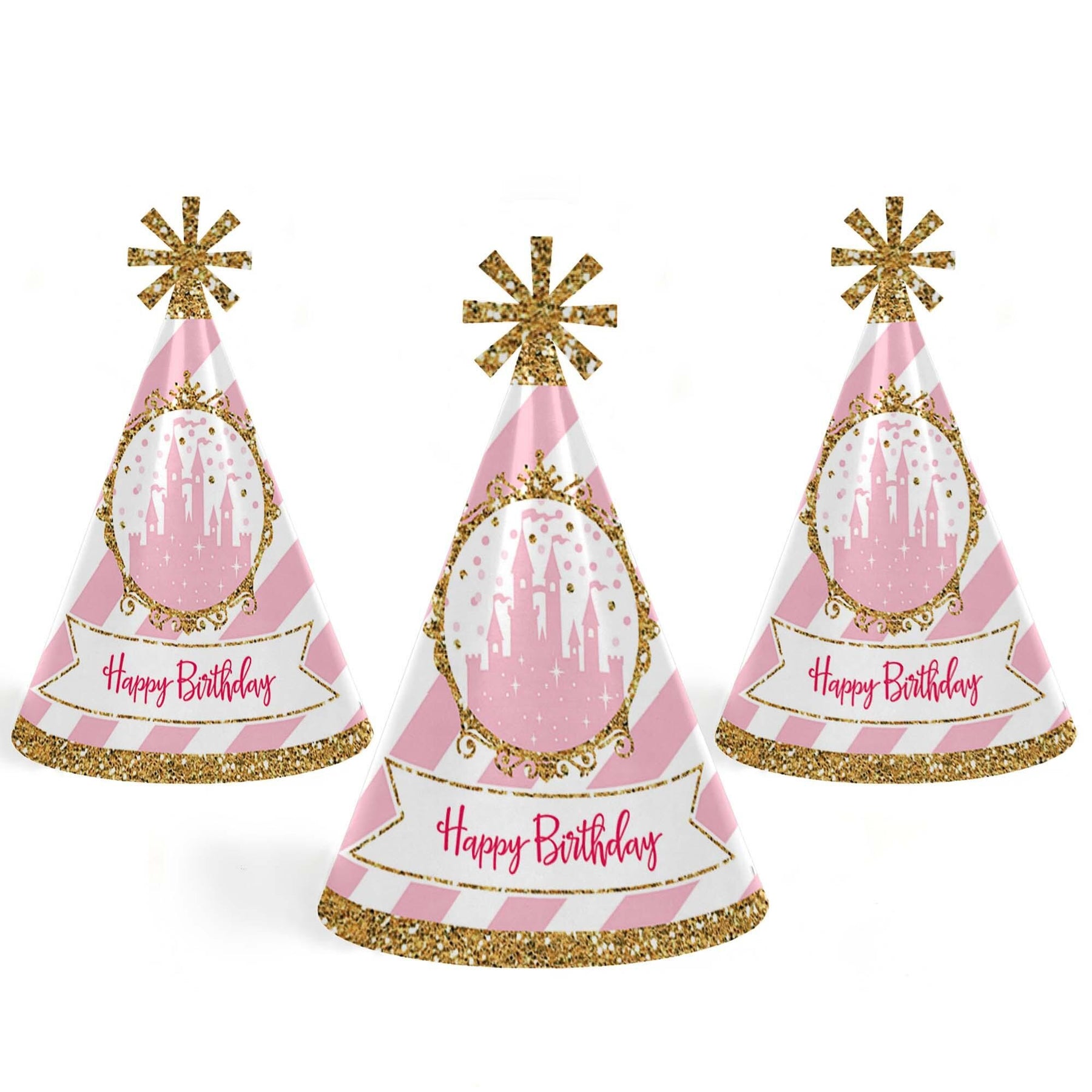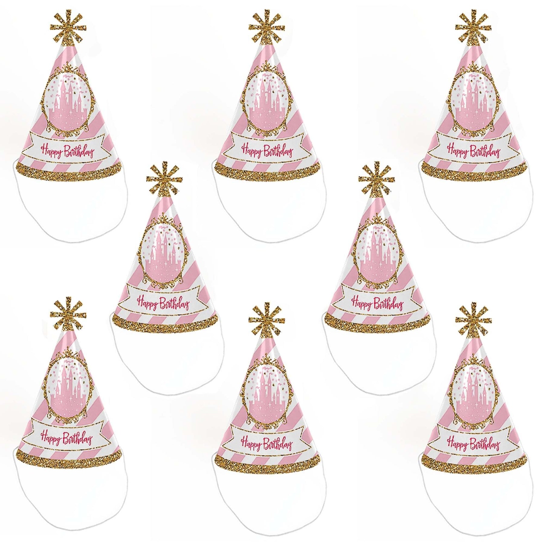 Everyone will be ready to celebrate with the guest of honor when wearing a custom Little Princess Crown party hat. This set of 8 party hats is a great addition to your event and is sure to get everyone smiling – especially the guest of honor! Each Little Princess Crown Cone Birthday Party Hat perfectly themed and has a festive star at the top. Be sure to have your camera ready because these Little Princess Crown birthday party hats are going to give you some great photos!