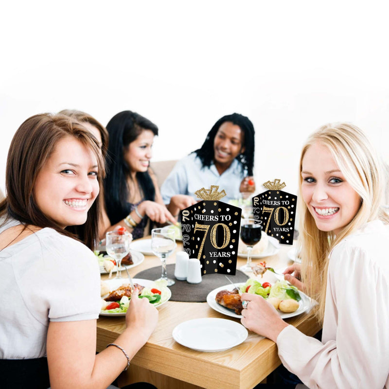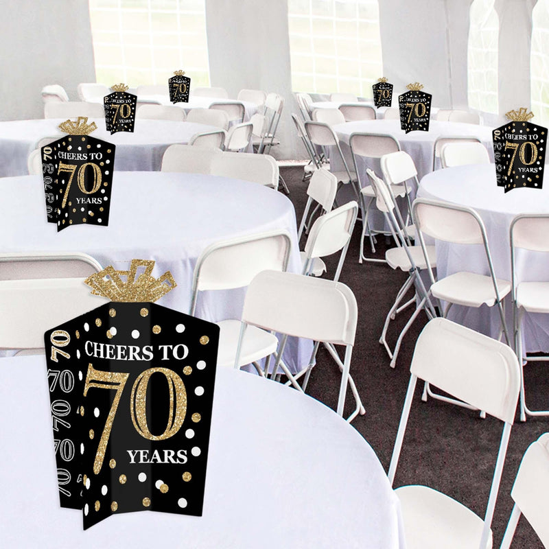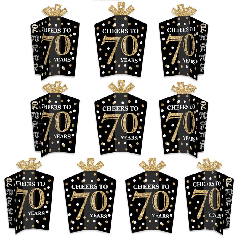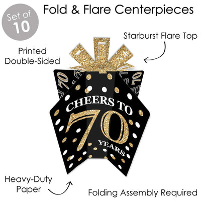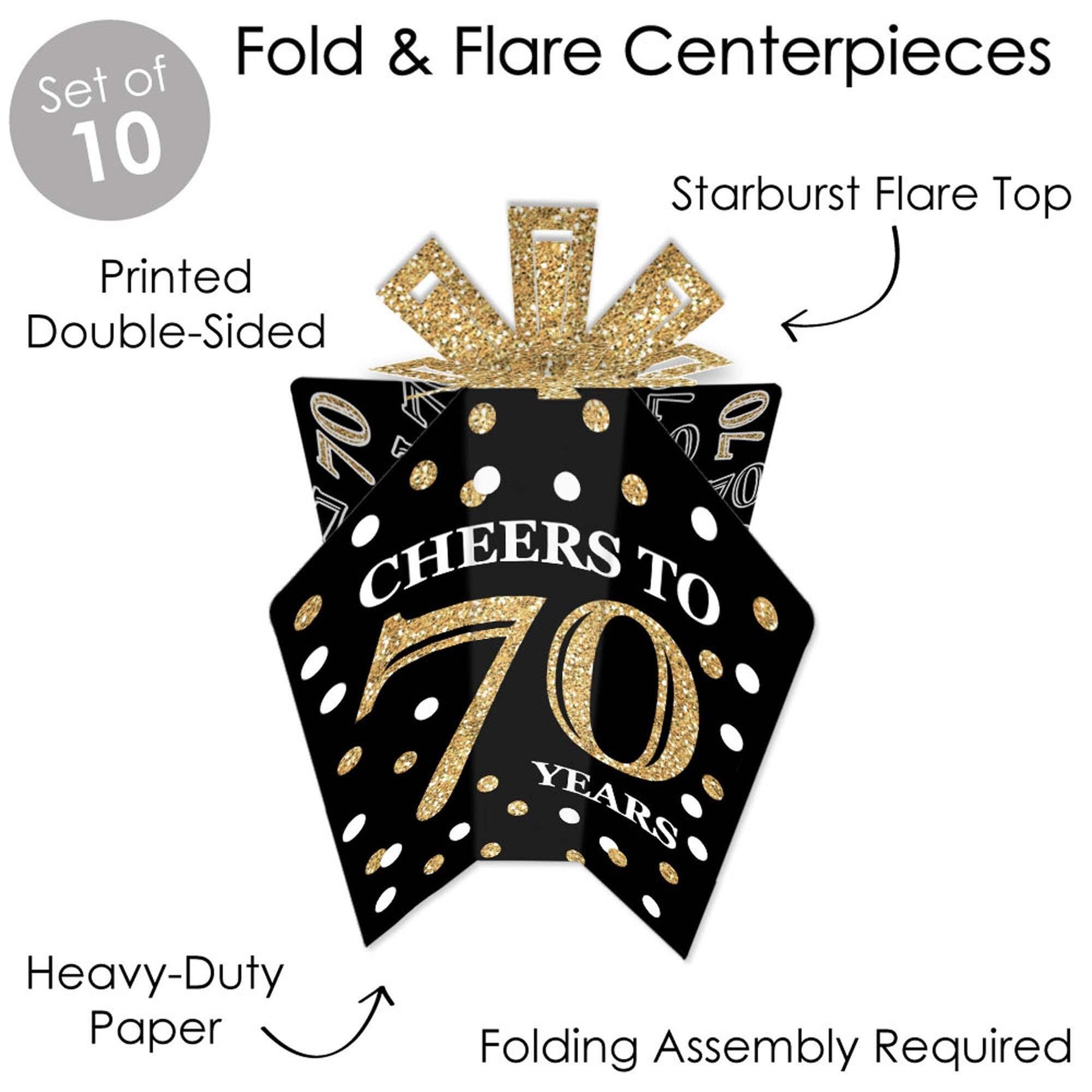 Adult 70th Birthday - Gold - Table Decorations - Baby Shower or Birthday Party Fold and Flare Centerpieces - 10 Count