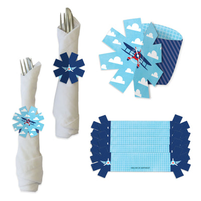 Take your baby shower “up, up, and away” with our breezy Airplane baby shower theme! Your future little pilot will be celebrated in a soft color scheme that incorporates shades of blue, yellow, and white. Our detailed plane is soaring away in the cloudy sky and is ready to celebrate your special day with matching invitations, favors, wall decorations and more! You’ll fall in love with our scenic Airplane baby shower theme!