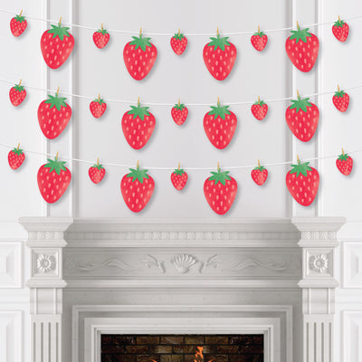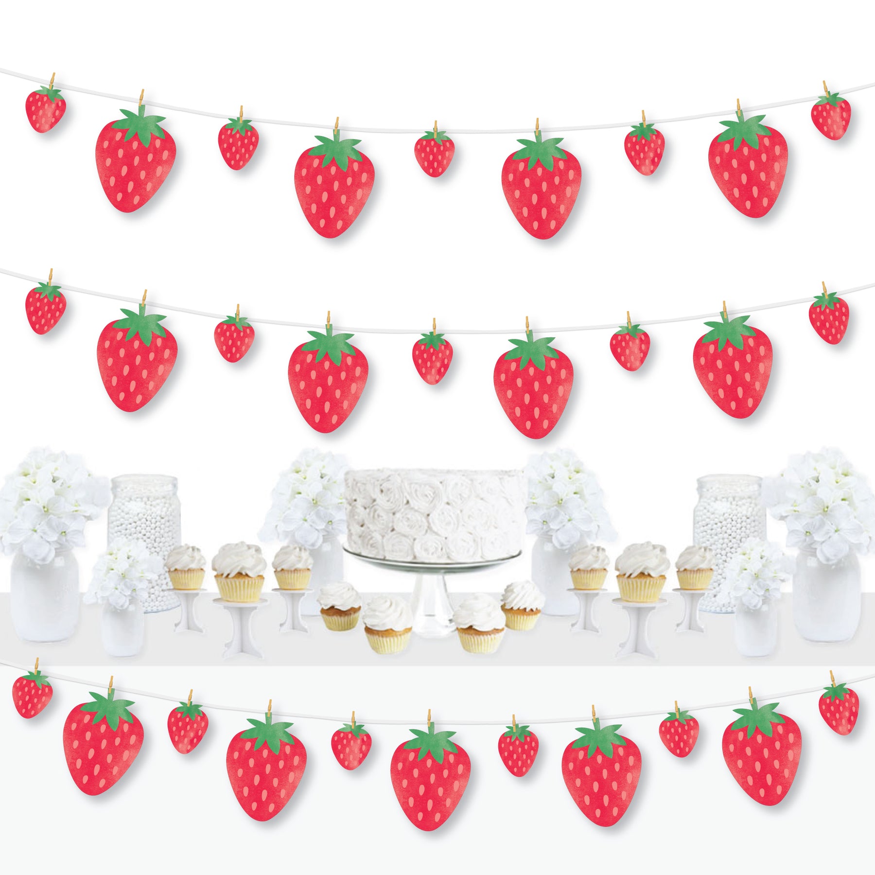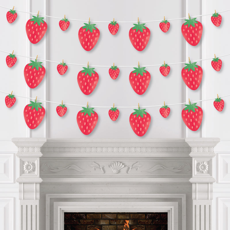 Berry Sweet Strawberry - Fruit Themed Birthday Party or Baby Shower - Clothespin Garland Banner - 44 Pieces