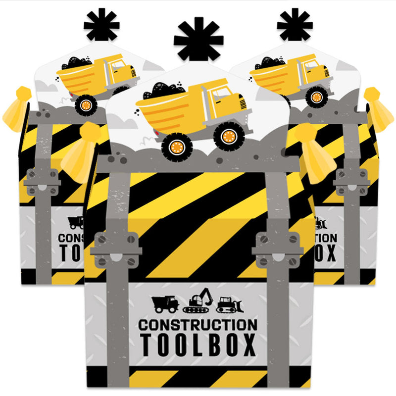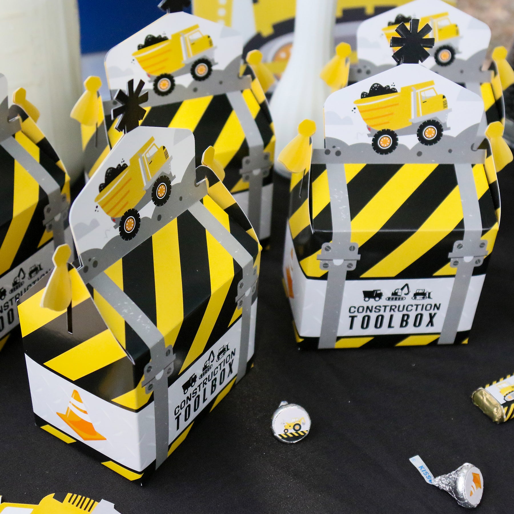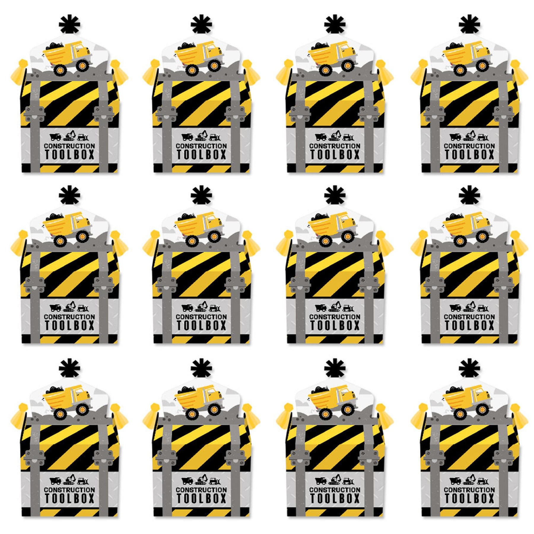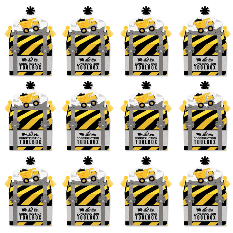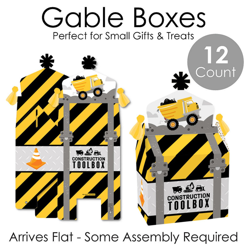 Dig It - Construction Party Zone - Treat Box Party Favors - Goodie Gable Boxes - Set of 12