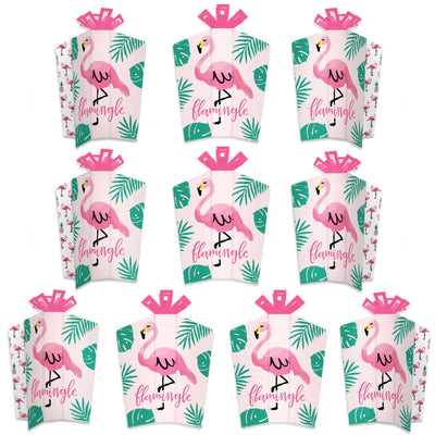 Just as the name implies, our Pink Flamingo - Party Like a Pineapple, tropical baby shower, bachelorette, or birthday party theme ideas will help you create an atmosphere that's full of fun, whimsy and pink flamingos. From invitations and thank you cards to wine labels, photo prop kits and favor boxes to flamingo yard decor, everything in this adorable theme features a pink, yellow, and green color scheme. Pink flamingos are featured on each of the items, while the background is detailed with a whimsical green palm tree and yellow pineapple pattern. Our Pink Flamingo - Party Like a Pineapple tropical summer party theme ideas will leave you "flocking" with delight!