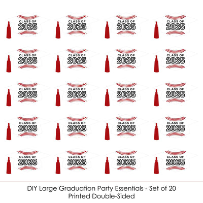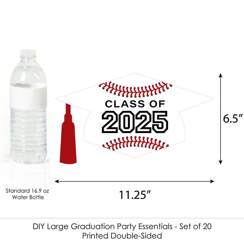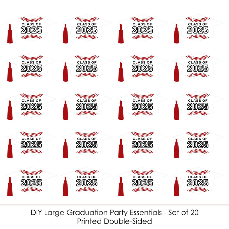 Fill your party space with festive graduation decorations when you use these extra-large hat-shaped cut outs for all of your DIY party ideas. Baseball themed Grad hat die-cut party décor looks great when used as wall decorations, bunting banners, even as centerpieces or at your buffet table. You can even attach your grad photos to them for a festive display. Best of all, this set of Graduation decor will arrive printed on each side so you can hang them from the ceiling or create fun balloon displays when you tie them to the balloon strings. Grad hat party décor kits are sure to help you style an impressive graduation party
