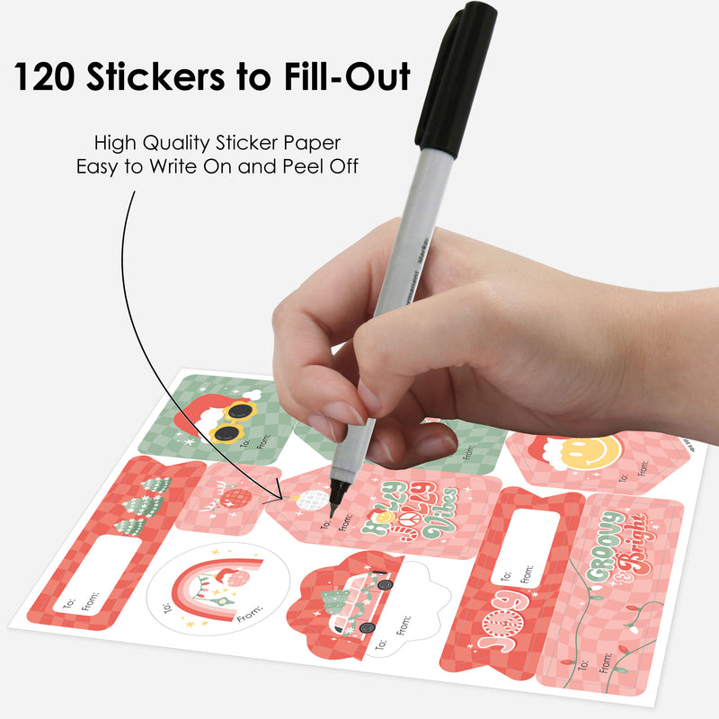 Take your gift-giving to another level when you use the Groovy Christmas To and From Stickers to personalize each gift. Perfect for a Pastel Holiday Party, the assorted stickers will add an extra charm to your present and will have your recipient eager to see what’s inside. To use, simply write in the To/From section of the gift label sticker. Then, peel and stick onto the surface of the gift! Professionally printed on high-quality sticker paper, each Groovy Christmas sticker set comes with 20 different designs and 12 sheets of 10 stickers for a total of 120 stickers altogether. Each sheet measures 5.75 in wide x 7.75 in tall. Adorable and practical, the Groovy Christmas gift tag labels are eye-catching and easy to write on. For a quick and easy solution, the Groovy Christmas To and From Stickers perfect way to personalize any presents—big or small.