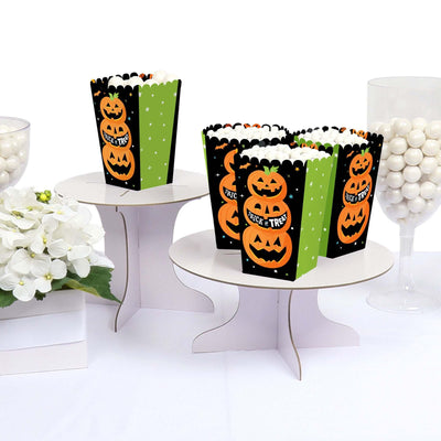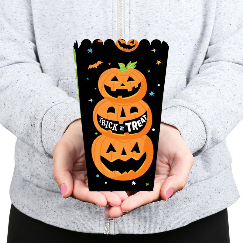 Each Jack-O'-Lantern Halloween popcorn box shows off the vivid colors of this Kids Halloween Party theme. The fun patterns will look great next to the rest of your party supplies. Display filled popcorn boxes at your candy buffet table or at each individual placesetting to really bring a "pop" of color to the entire event.