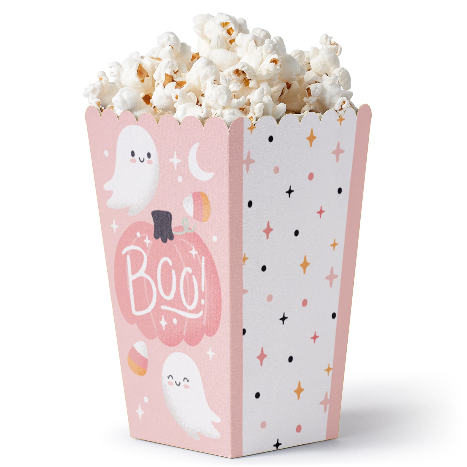 Each Pastel Halloween popcorn box shows off the vivid colors of this Cute Spooky Pink Pumpkin Party theme. The fun patterns will look great next to the rest of your party supplies. Display filled popcorn boxes at your candy buffet table or at each individual place setting to really bring a "pop" of color to the entire event.