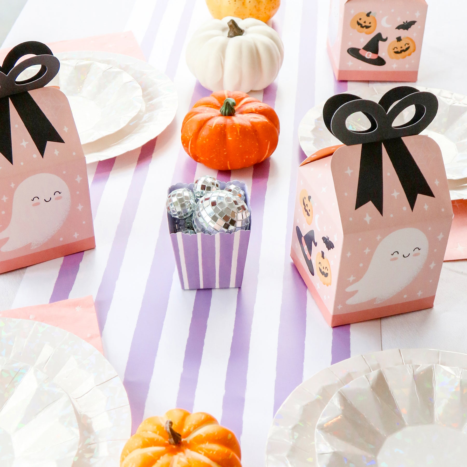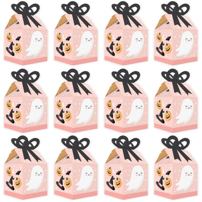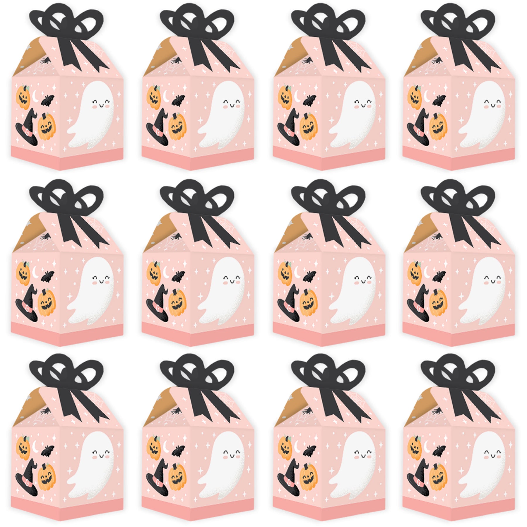 Pastel Halloween - Square Favor Gift Boxes - Pink Pumpkin Party Bow Boxes - Set of 12