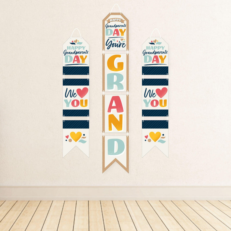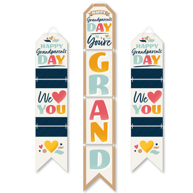 Happy Grandparents Day - Hanging Vertical Paper Door Banners - Grandma & Grandpa Party Wall Decoration Kit - Indoor Door Decor