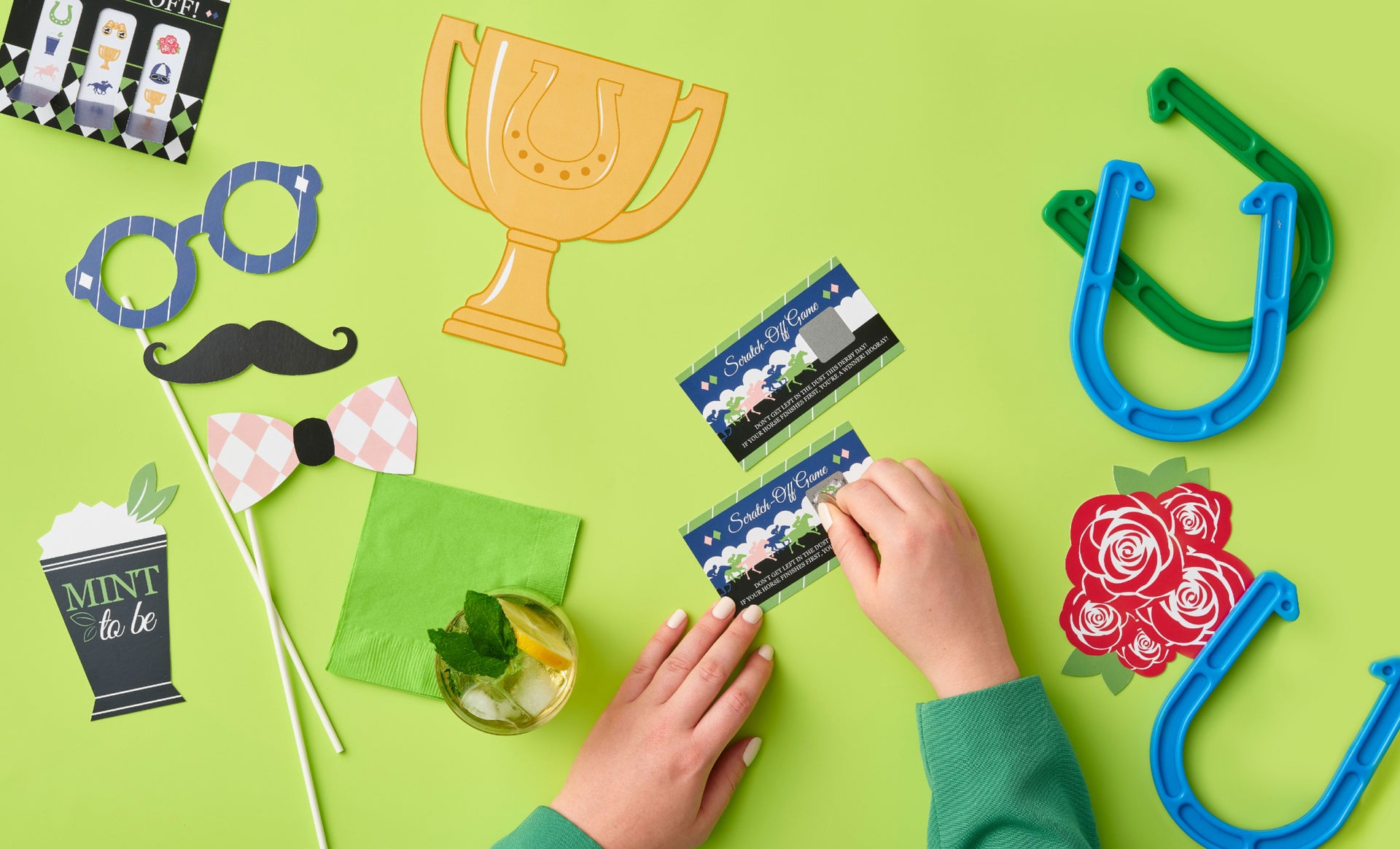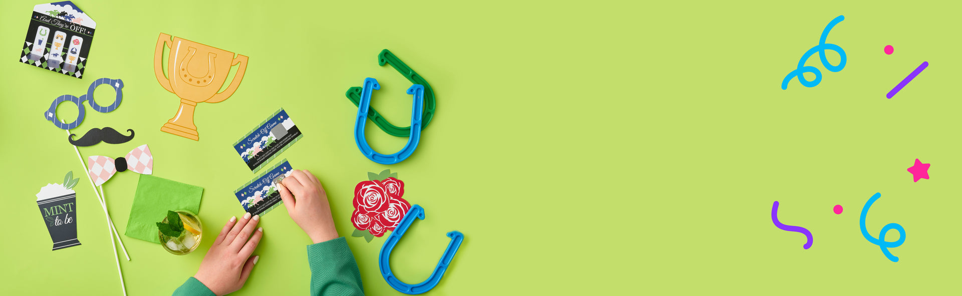 Make the Horse Race Party decorations stand out when you add these fun Kentucky Horse Derby wine bottle labels to your beverage bar. Each set of four wine bottle labels has four different yet coordinating designs. Add them to standard-sized bottles, either over the original labels or onto bottles that have had their labels removed. Kentucky Horse Derby wine bottle label stickers will dress up your beverage bar and entertain all your guests.