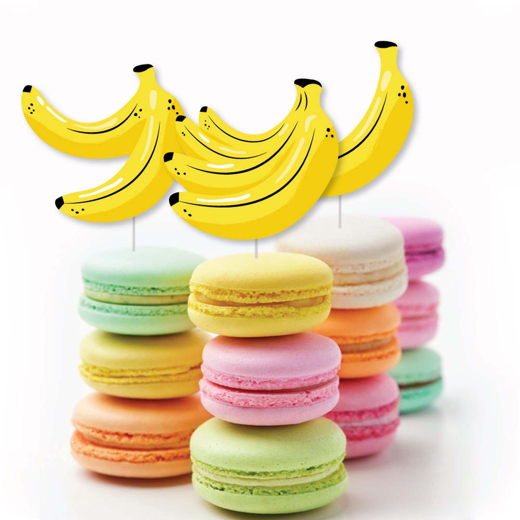 Let's Go Bananas paper embellishment cut-outs are an easy way to decorate for your forest friends themed celebration. This set of 24 paper die cut shapes are made from heavy card stock and will make all of your baby shower or birthday party craft ideas perfectly coordinate with the Let's Go Bananas - Tropical Party theme. Shaped paper cut outs can be attached to a toothpick and used as cupcake picks, glued to straws for a fun beverage bar or scattered like table decoration confetti. They can even be used afterward as scrapbook embellishments when you make your party pages! This set of Let's Go Bananas paper cut outs come with different shapes to make your do-it-yourself baby shower or birthday party crafts especially YOU-nique!