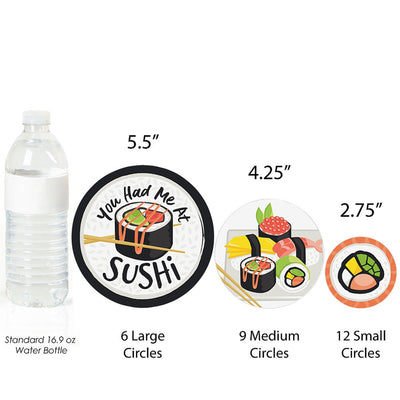 This Kit Includes 27 Confetti Pieces: 6 – 5.5” party circles with Let's Roll - Sushi character 9 – 4.25” party circles with Let's Roll - Sushi character 12 – 2.75” party circles with Let's Roll - Sushi character