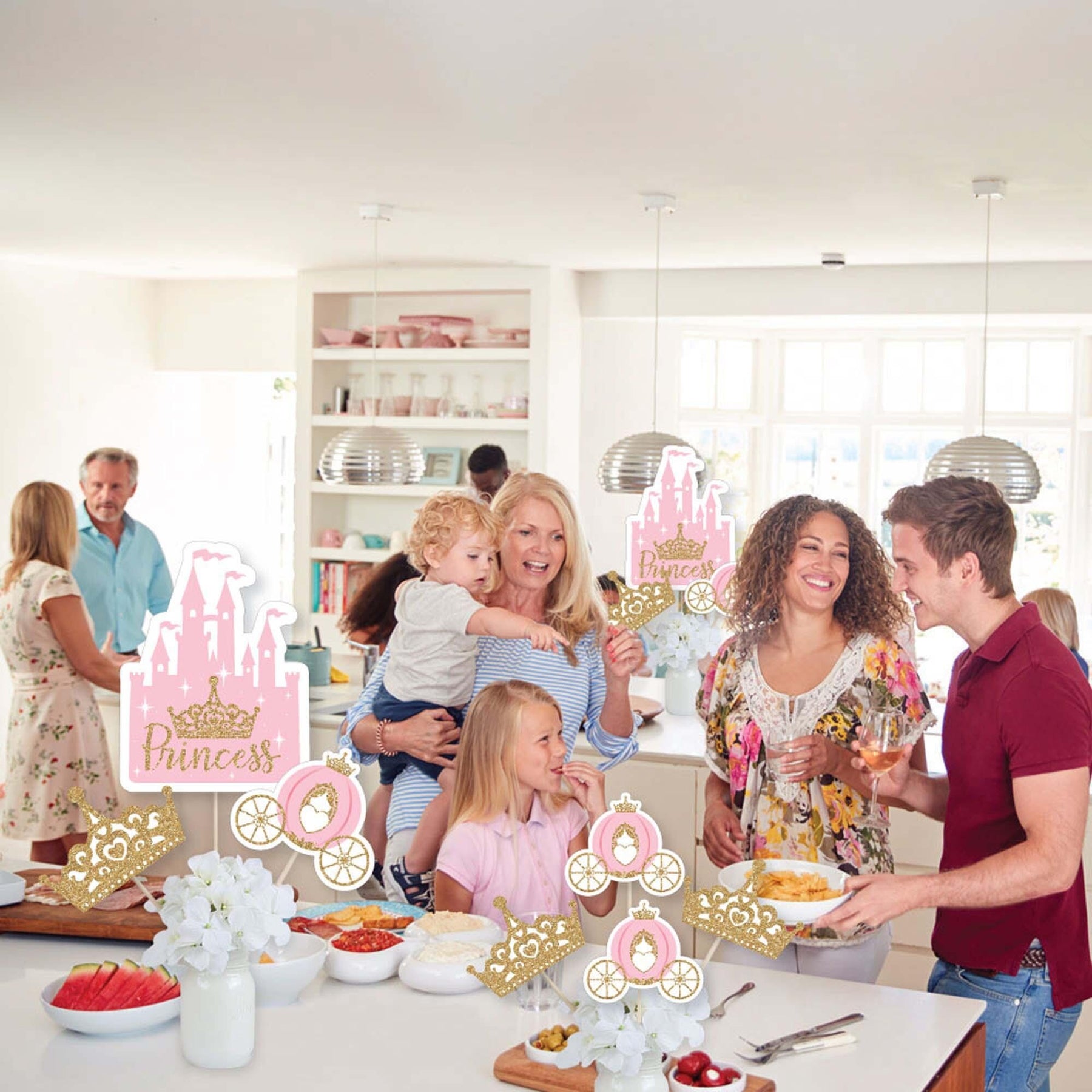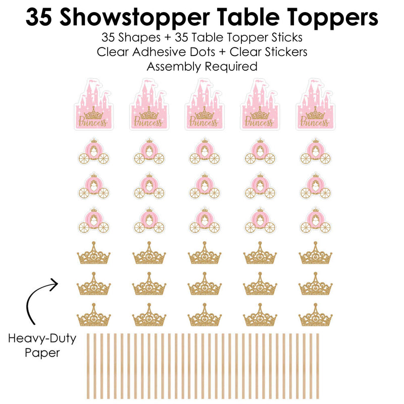 Little Princess Crown - Pink and Gold Princess Baby Shower or Birthday Party Centerpiece Sticks - Showstopper Table Toppers - 35 Pieces
