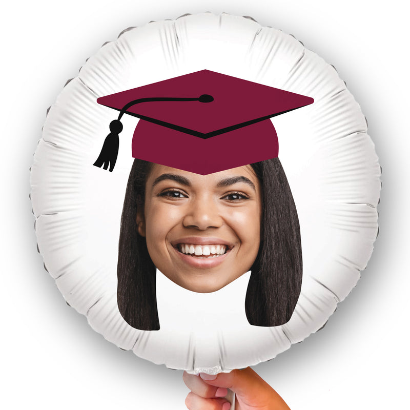 Float your grad party to new heights! Add a personalized touch to your next Graduation celebration with the Custom Maroon Grad Cap Balloon! Our design team takes your high-resolution photo and expertly removes the background, printing your face on both sides of a 14-inch Mylar balloon. Each balloon comes flat and includes a straw for easy inflation with air or helium. Create unforgettable memories with this fun, custom balloon that will bring smiles to everyone!