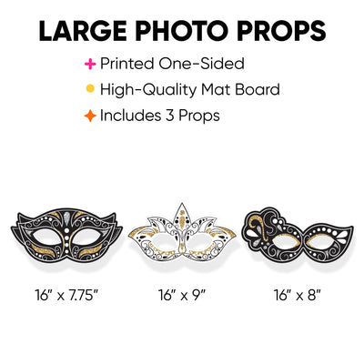 Grab your besties and get ready to have a blast with our Masquerade Large Photo Props. This set of 3 jumbo-sized picture props is a must-have and will add an extra dose of fun at any Party. Simply place them next to your photo booth station and watch your guests go wild! Alternatively, the props can also be adhered to the wall or displayed throughout your venue as party decorations! From selfies to group photos, capture all the fun with our photo props!
