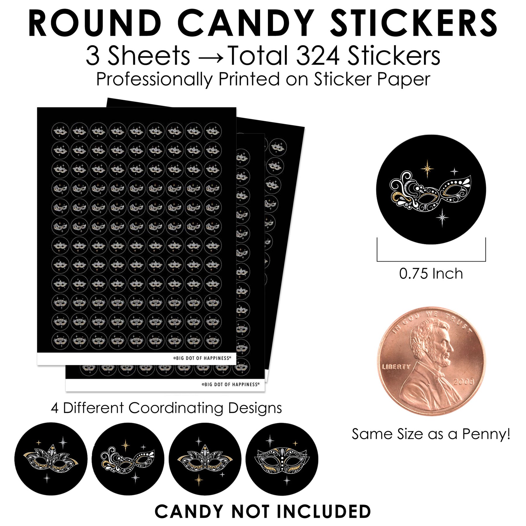 Masquerade Candy Stickers - 3 Sheets of 108