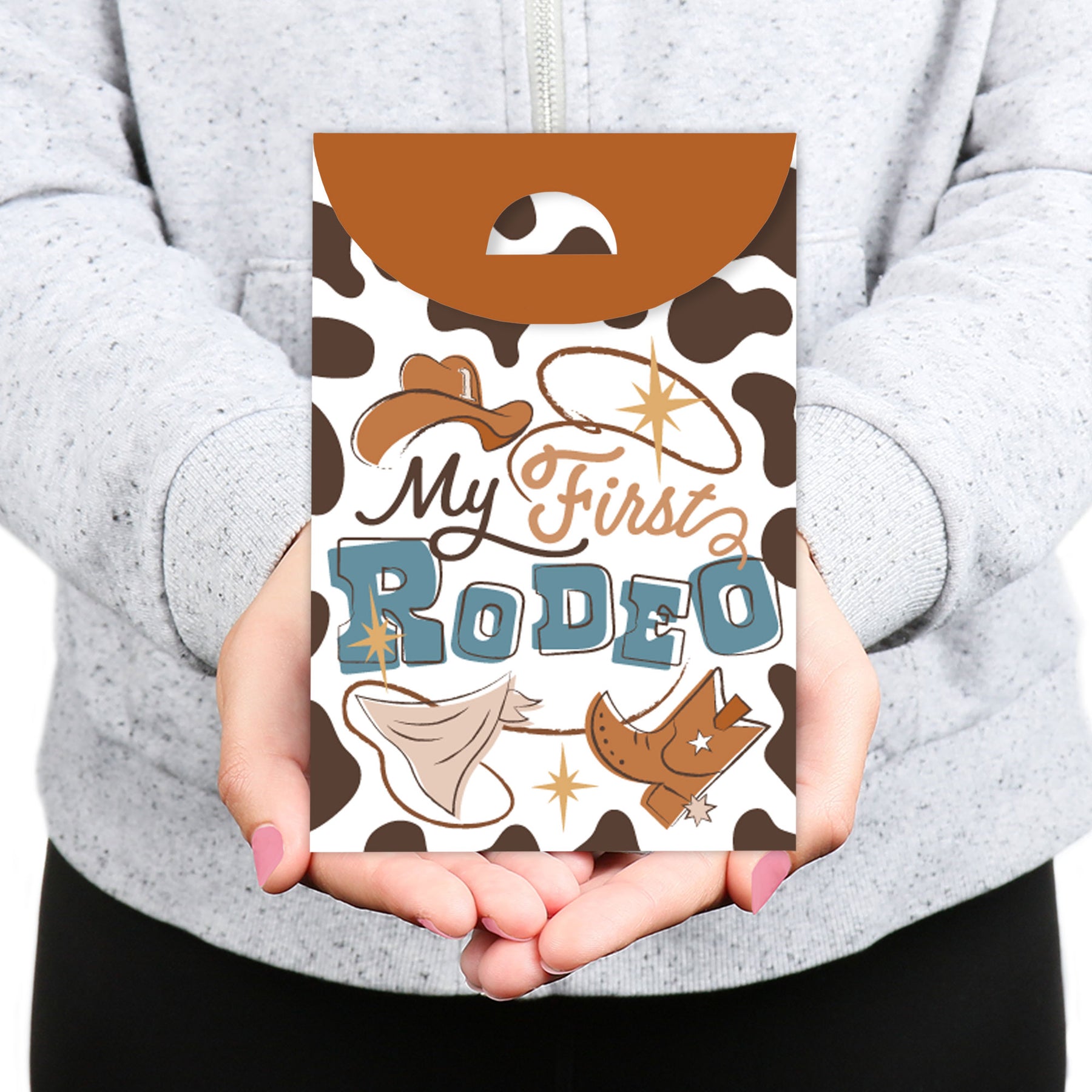 From small treats to western-themed trinkets and gifts, thrill your guests with the My First Rodeo Party Goodie Bags! Ideal for your Birthday Party, these loot bags measure to be 4.75” long x 2.5” wide x 7” tall and will certainly be a delight at your celebration. These party bags come in a set of 12 and are professionally printed double-sided on sturdy cardstock paper with some easy DIY assembly required. Each favor bag includes creased lines and numbered tabs for easy folding. To close the bag, fold over the top flap and insert the tab inside the slit to secure it shut. Packaging will also include assembly instructions. Fill these swag bags with small surprises inside and place them at your dessert table for guests to grab and take home. Make your celebration complete when you delight your guests with the Birthday Party Goodie Bags.