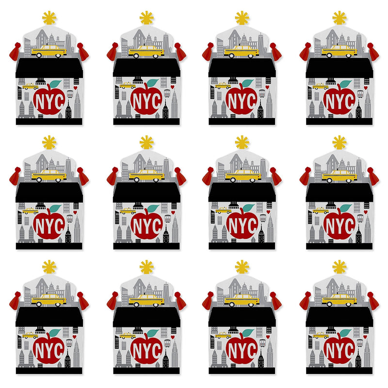 NYC Cityscape - Treat Box Party Favors - New York City Party Goodie Gable Boxes - Set of 12