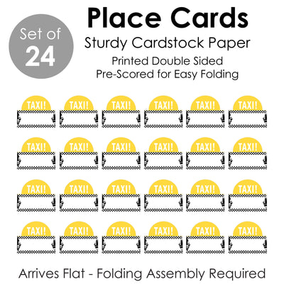 Level up your celebration by adding a special touch with the NYC Cityscape Place Cards. Coming in a set of 24, these place cards can be used in a variety of ways at your New York City Party . Personalize them by writing your guests’ names on them, use them as table numbers at your venue, or display them at the buffet table as informational food tent cards. Lightweight and eye-catching, the NYC Cityscape Place Cards are professionally printed double-sided on sturdy cardstock paper with a photo-like shine. To assemble, write in the blank space area with a pen or marker. Then, push back the top outer edge, revealing the half-circle shape, and fold along the creased line. Great for banquets, reserved seating, table accents, and more, place cards measure to be 3.5 inches wide x 2.5 inches tall when fully assembled. Bring your celebration to life with the NYC Cityscape Place Cards!