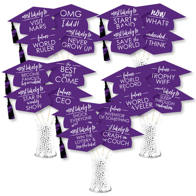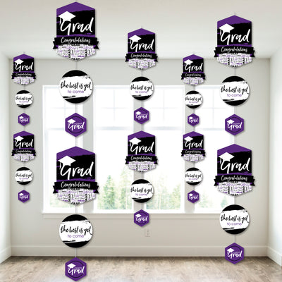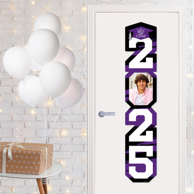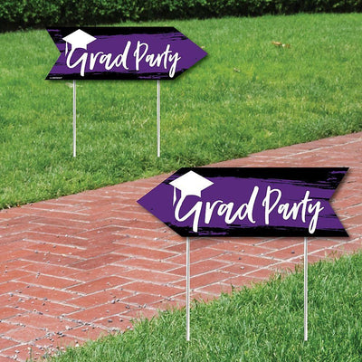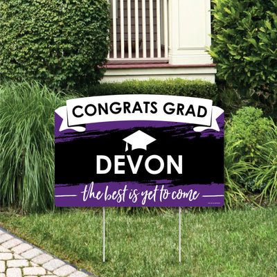 Honor your graduate and their years of hard work with a graduation party styled in the vibrant Best is Yet to Come – Purple graduation theme. This collection of grad party supplies has everything you need to make their day memorable. Whether you are using purple graduation party supplies to pay tribute to your grad’s school colors or to simply highlight their favorite color. Begin by adding purple graduation lawn decorations outside of your grad party, then fill your space with custom graduation party decorations in the same purple & black design. From graduation photo booth props to eye-catching banners, there is something YOU-nique for every grad party.