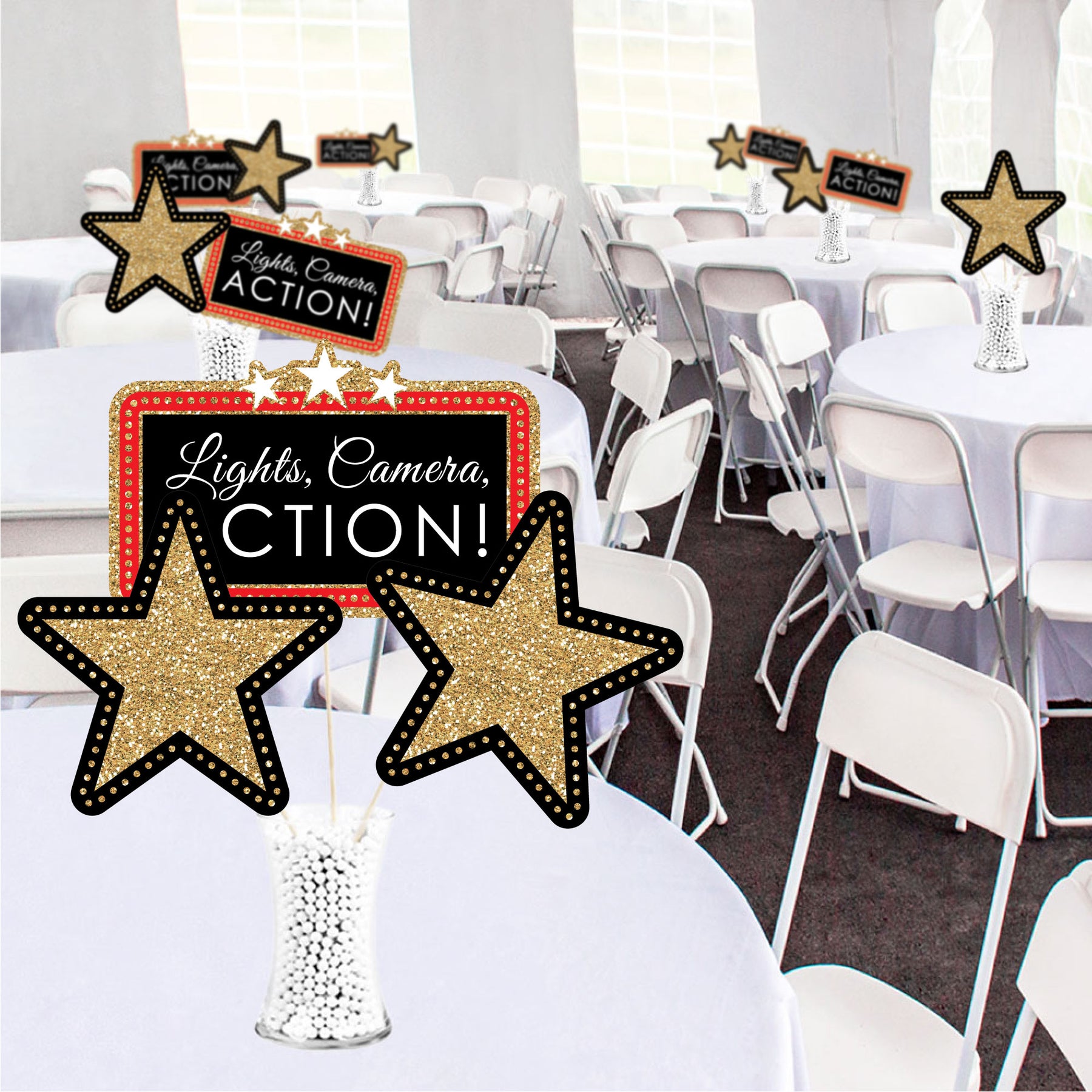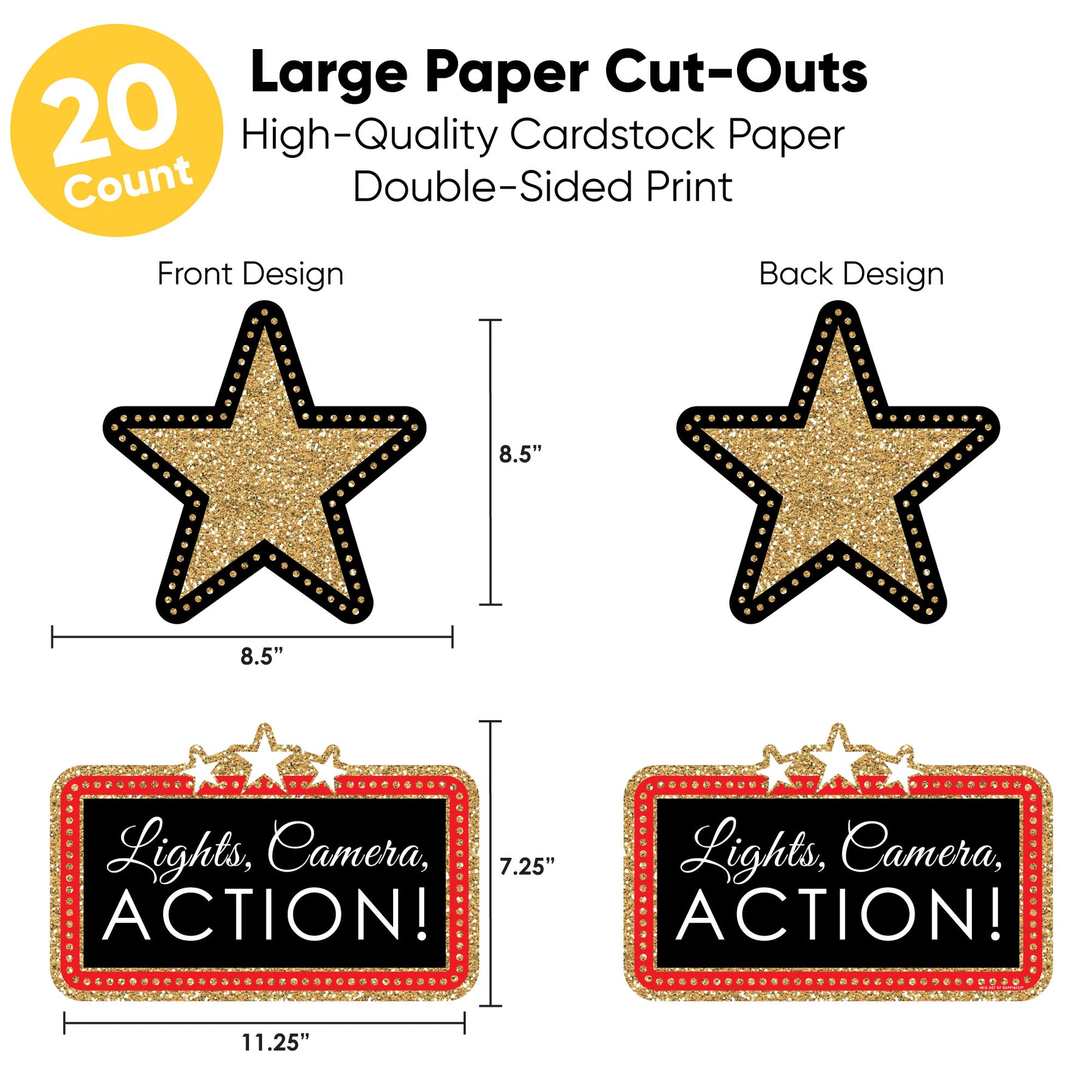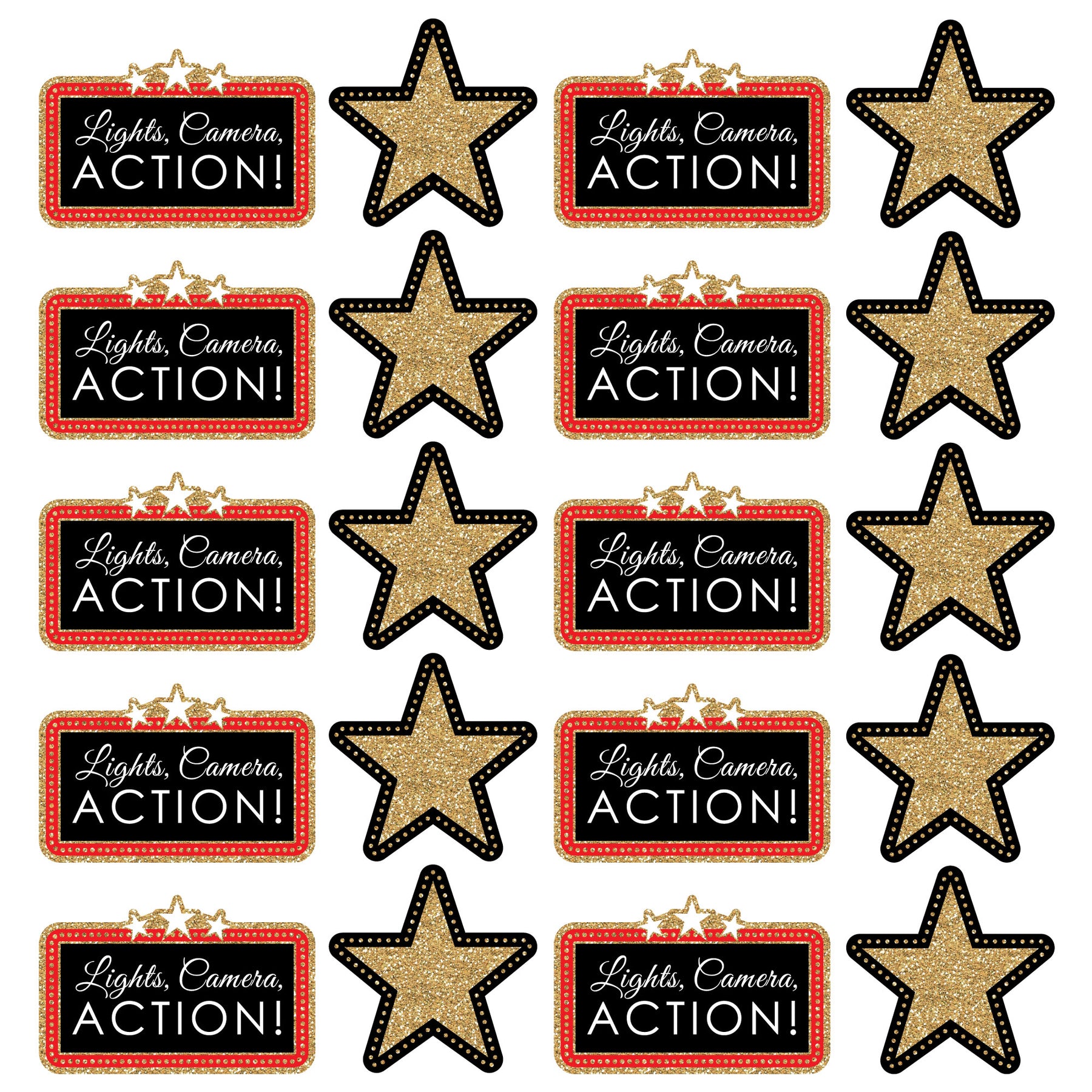 • Set includes 20 large printed and cut movie starthemed decorations