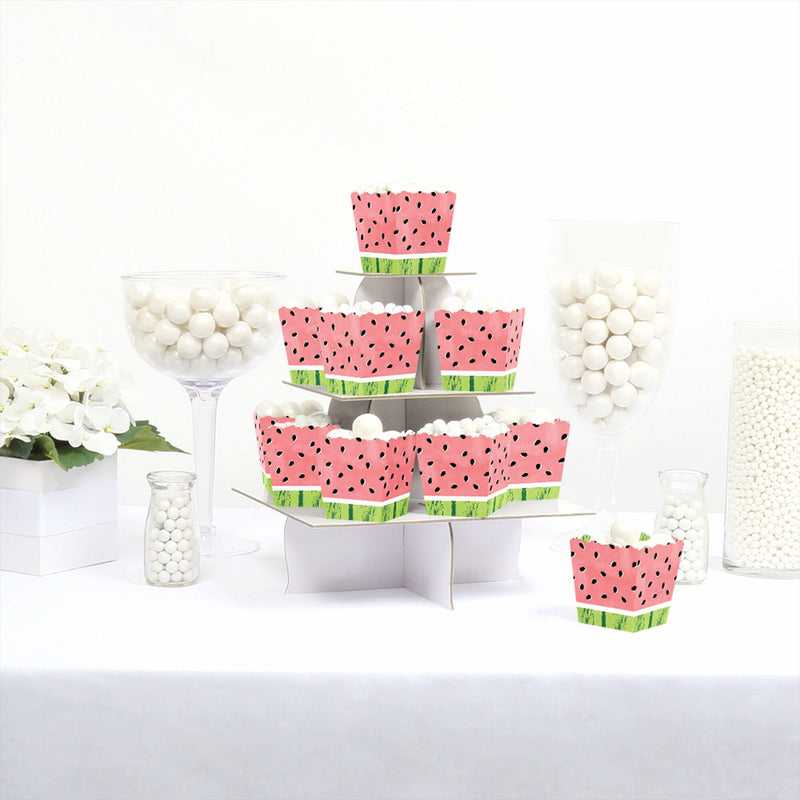 Our Sweet Watermelon candy boxes are a DIY party planner's dream: impressively designed, colorfully themed, and the perfect size for a variety of small candies! Your candy buffet or party tables will be so impressive. Each candy box is printed on premium-grade satin paper with a photo-like shine that is made in the USA, and will match your Sweet Watermelon - Fruit Baby Shower or Birthday Party theme perfectly! The top of these die-cut boxes are decoratively cut. Add a stylish yet whimsical touch to your party's candy station with our Sweet Watermelon candy boxes.