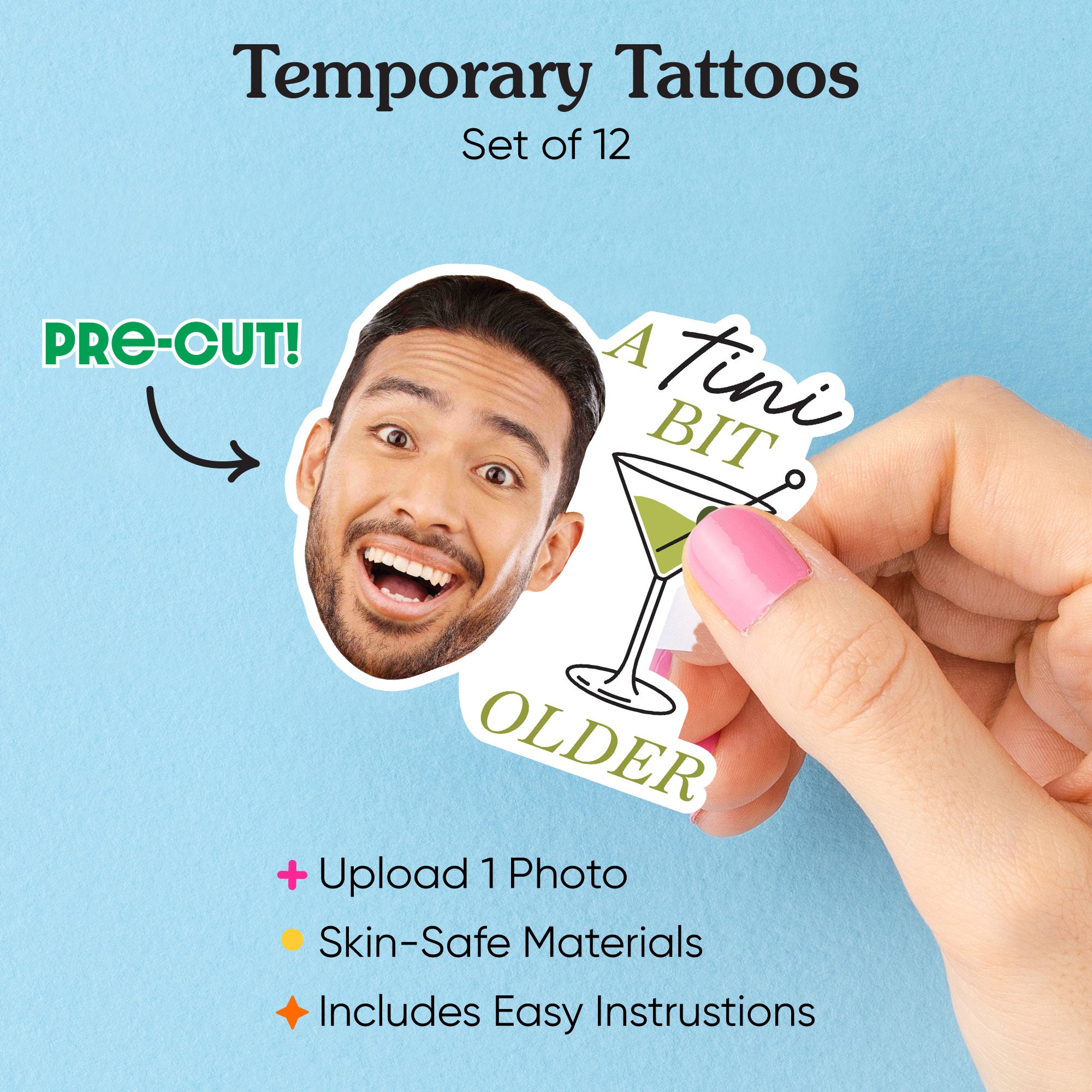 Say hello to our vibrant and awesome A Tini Bit Older Fun Face Temporary Tattoos! A must-have party favor. These fake tattoos are the perfect way to rock a fun photo of your guest of honor! Simply apply the tattoo on clean and dry skin with a damp cloth, and then, let it dry before showing it off to the world! To clean, use baby oil, makeup remover, or micellar water. From celebrating the guest of honor to making fun memories, our tattoos are here for a good time, not a long time. So, gather your crew and get ready to bring to party to life!