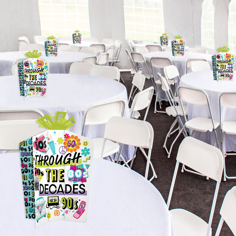 Through the Decades - Table Decorations - 50s, 60s, 70s, 80s, and 90s Party Fold and Flare Centerpieces - 10 Count