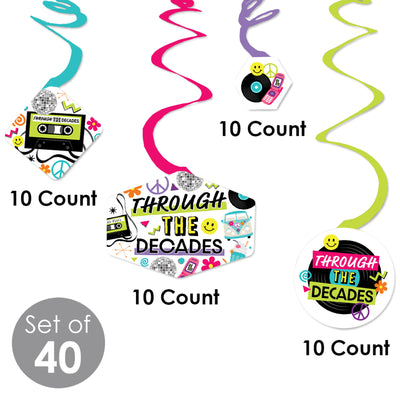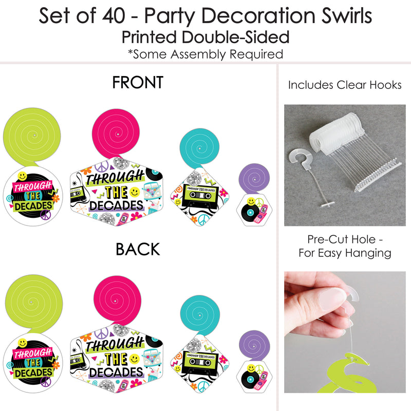 Through the Decades - 50s, 60s, 70s, 80s, and 90s Party Hanging Decor - Party Decoration Swirls - Set of 40: