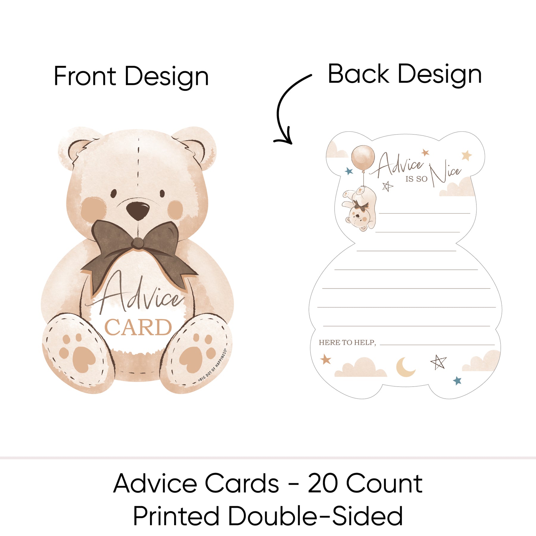 Whether you are hosting a traditional baby shower, baby sprinkle or diaper party, everyone is ready to offer their best advice. We Can Bearly Wait - Teddy Bear Advice Cards are a great way to get everyone involved. They will give your party guests a chance to write down their best helpful hints for the expecting parents. The guest of honor will appreciate these little bear Advice Cards for years to come and they will be an amazing addition to your baby shower celebration.
