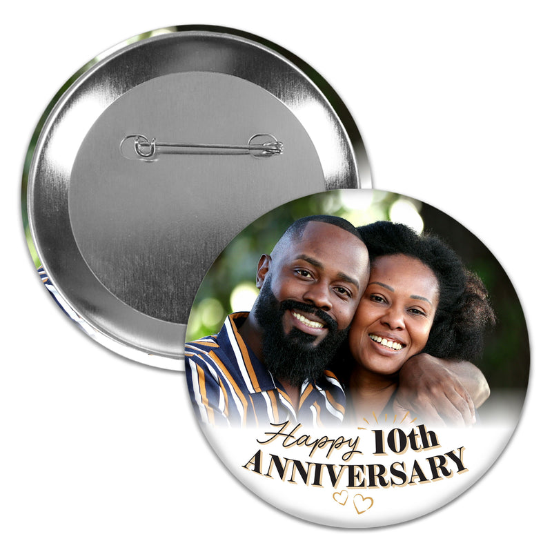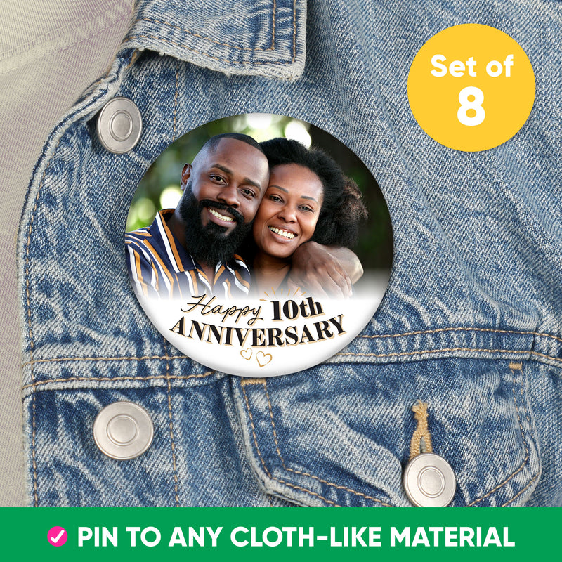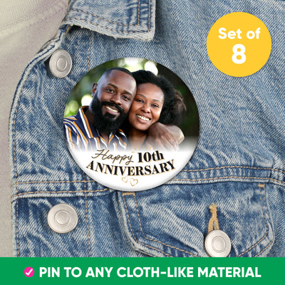 Custom Photo Wedding Anniversary Pinback Buttons - 8 Ct