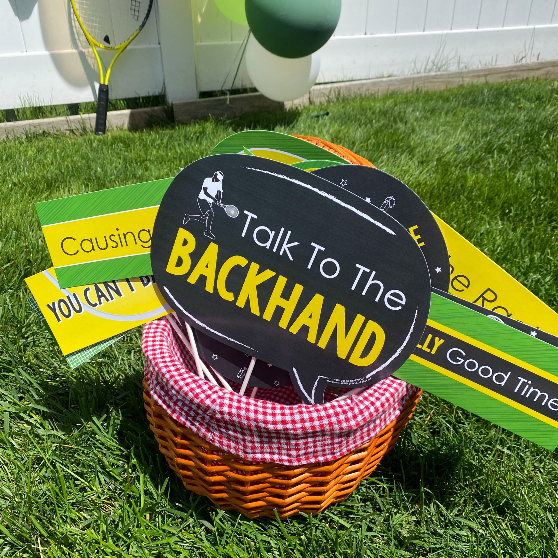 The perfect photo booth begins with fabulous photo booth props. Our printed and cut kit will help you easily create fun party photos at your next Baby Shower or Birthday Party. This Funny You Got Served - Tennis prop kit comes with 10 pieces and is ready for quick assembly. Simply add the included dowels to each piece, attaching with the included clear stickers, and display alongside a fun photo booth backdrop. Your friends and family will love the fun photos they will create with this amazing 10 piece Funny You Got Served - Tennis Photo Booth Prop Kit.