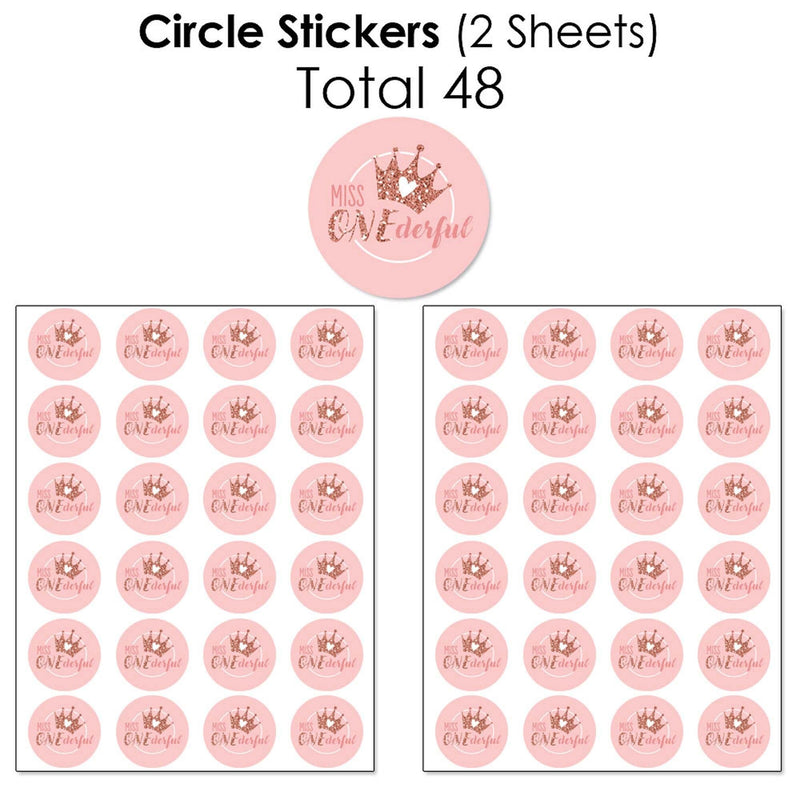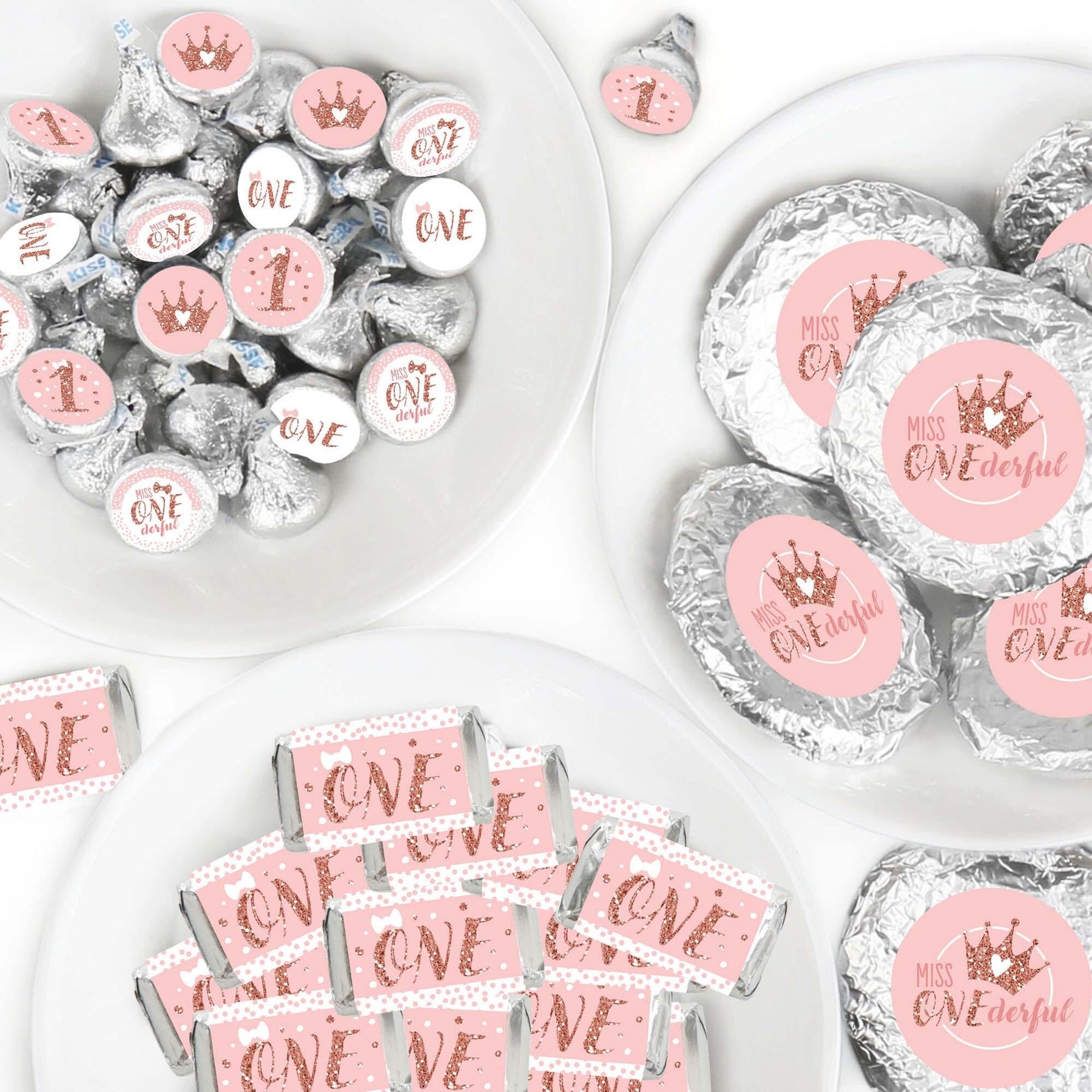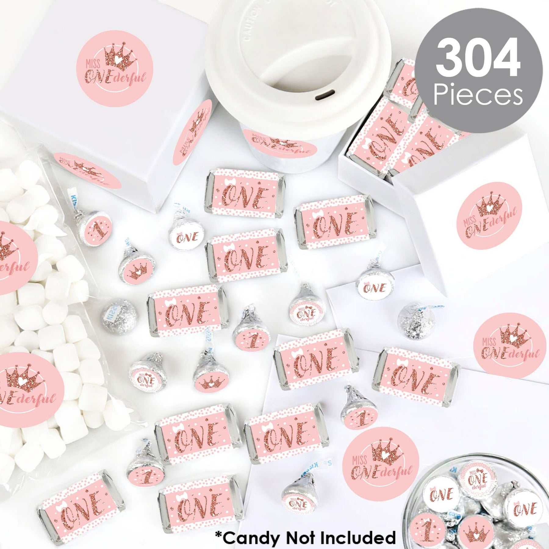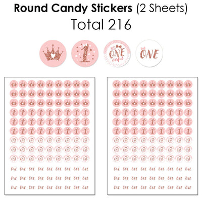 1st Birthday Little Miss Onederful - Girl First Birthday Party Candy Favor Sticker Kit - 304 Pieces