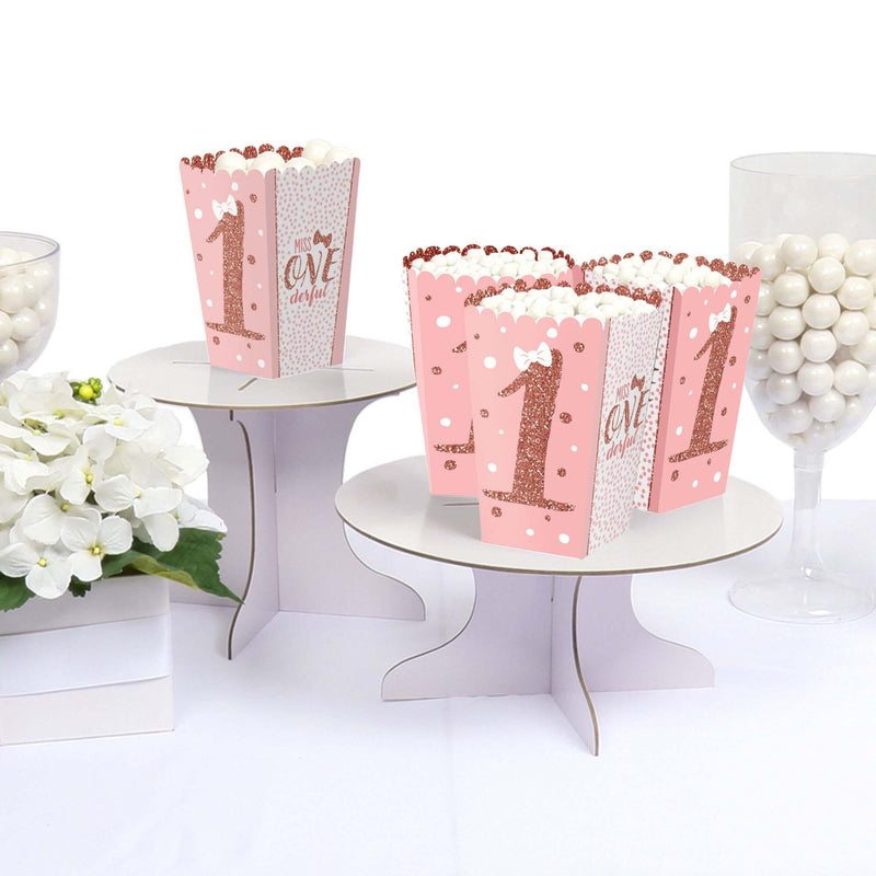 Your guests will not go hungry when you serve them sweet or salty snacks in these 1st Birthday Little Miss Onederful popcorn boxes.