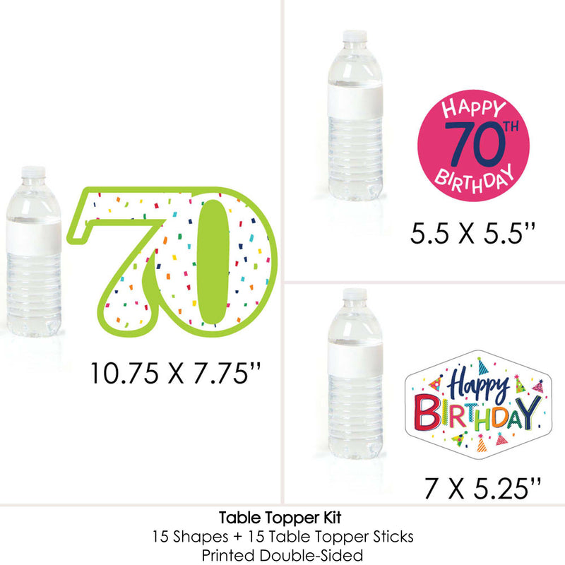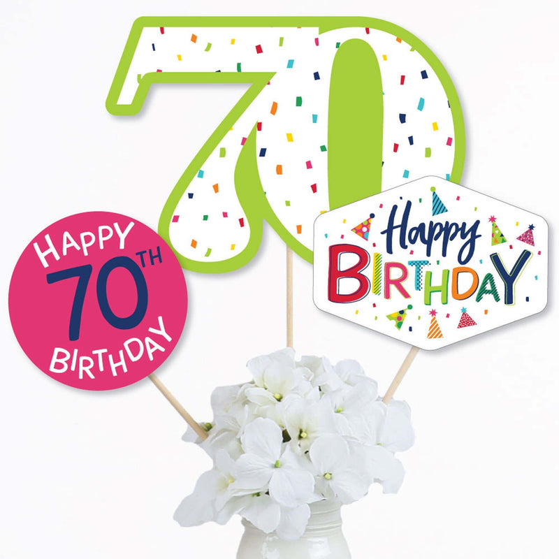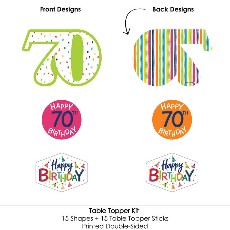 70th Birthday - Cheerful Happy Birthday - Colorful Seventieth Birthday Party Centerpiece Sticks - Table Toppers - Set of 15