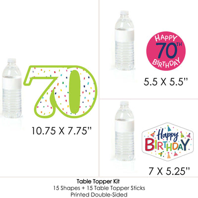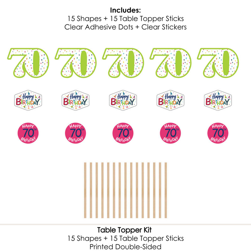 70th Birthday - Cheerful Happy Birthday Party Centerpiece Sticks Details:
