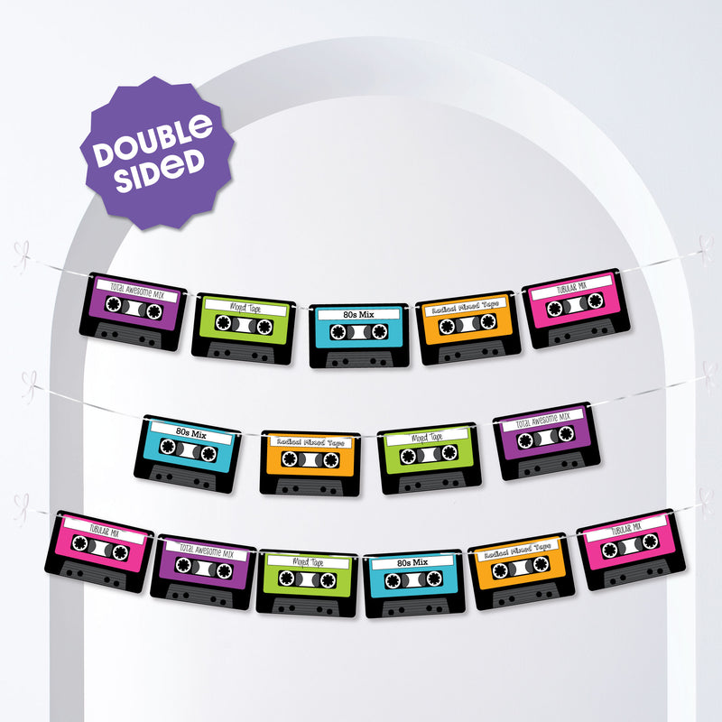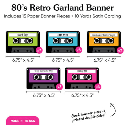 Turn up the neon and party like it’s the 80s with our retro-themed garland banner! This totally rad decoration sets the scene for a blast from the past, whether you're rocking leg warmers or jamming to your favorite mixtape. Designed for double-sided impact, it stands out from every angle and comes with 15 feet of white cording for easy setup. Let’s get this party poppin’!