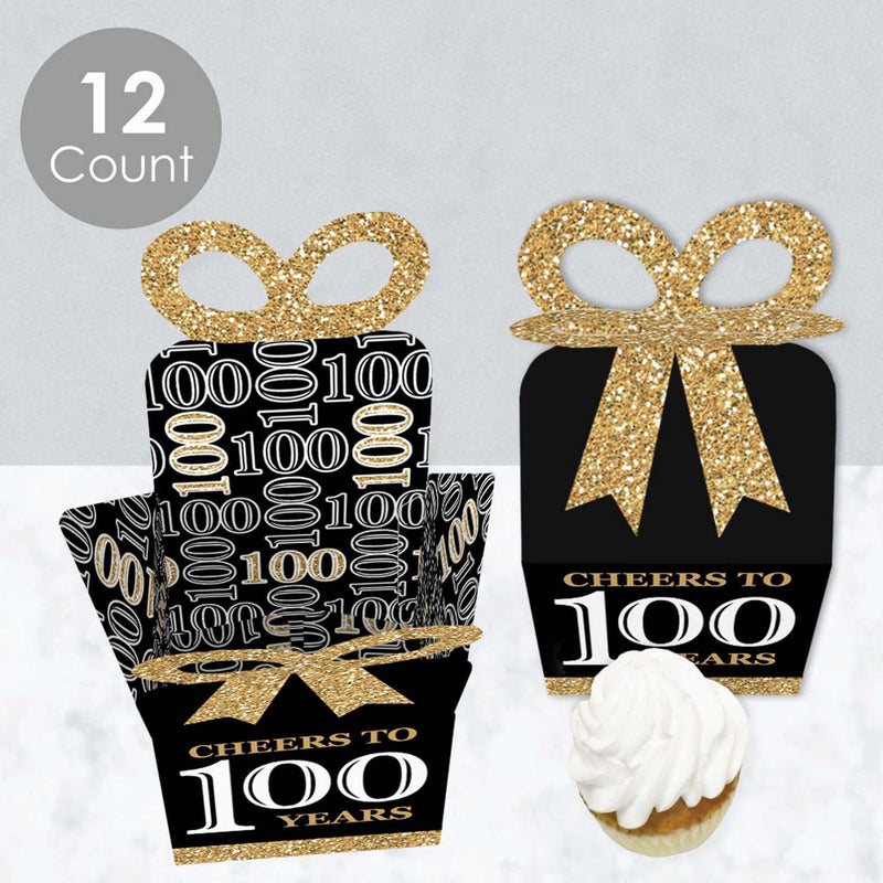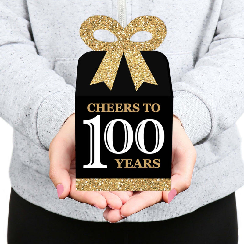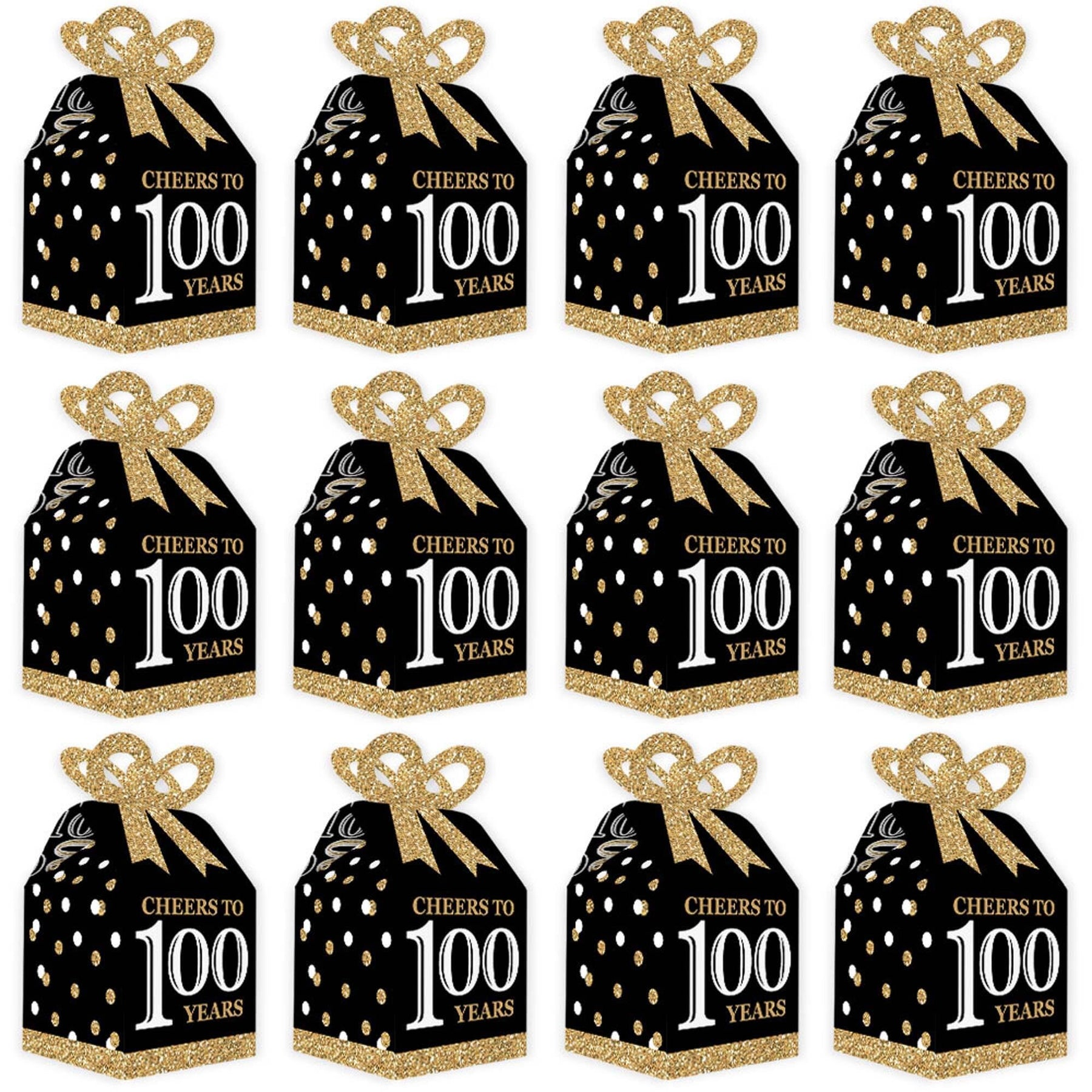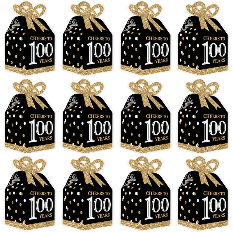 Adult 100th Birthday - Gold - Square Favor Gift Boxes - Birthday Party Bow Boxes - Set of 12
