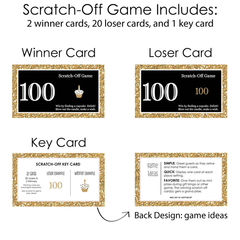 100th Birthday Gold Scratch Off Cards Game - 22 Ct