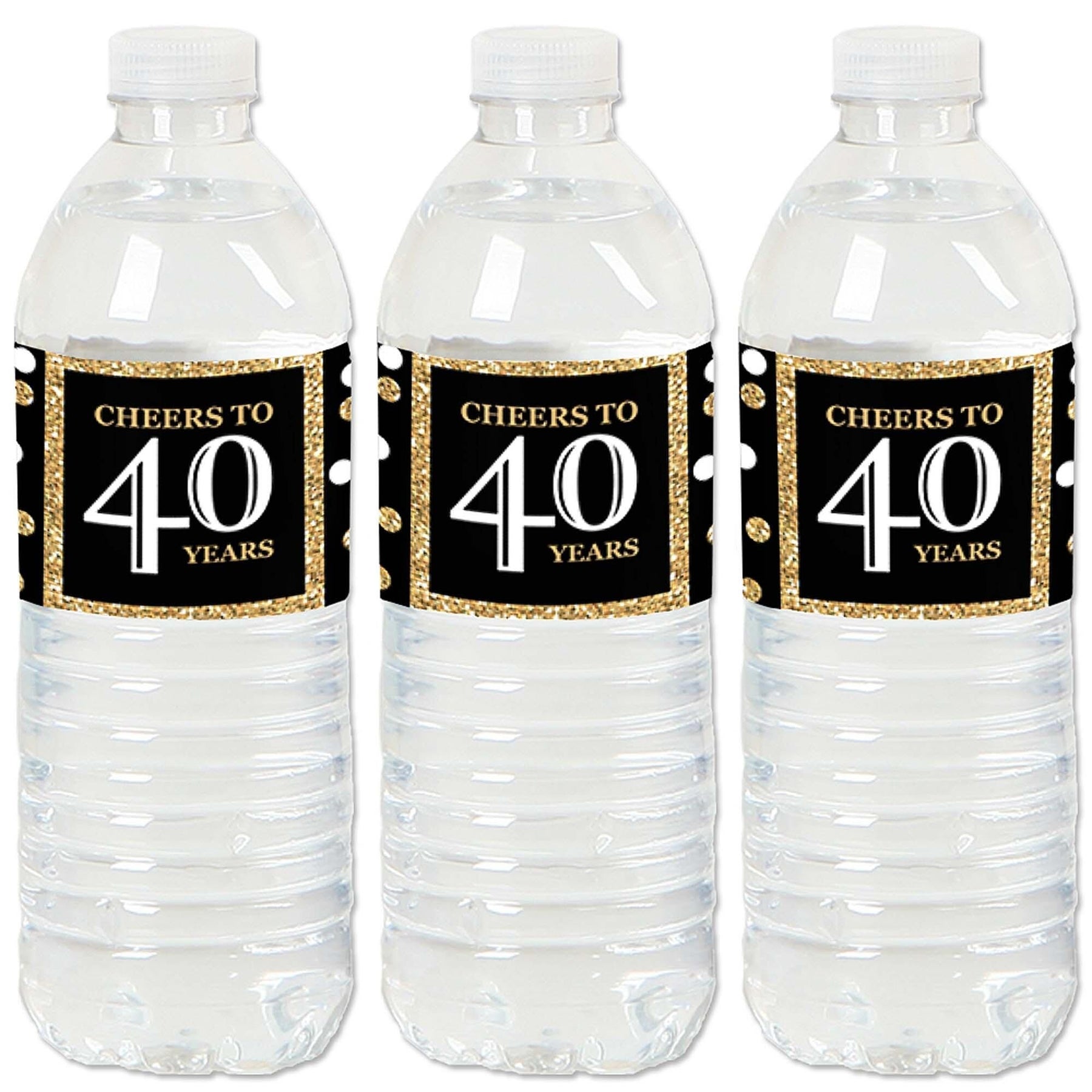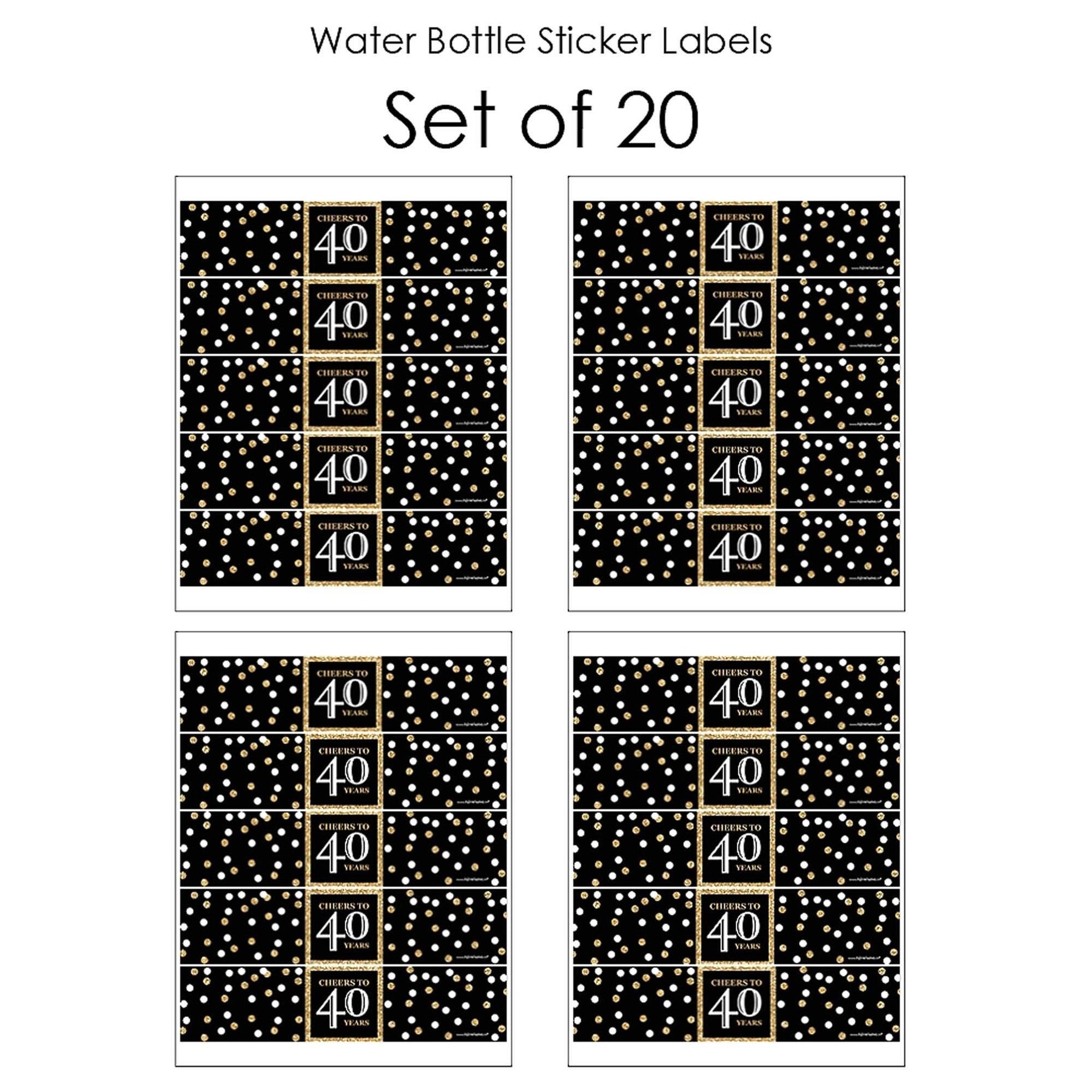 There is no better way to decorate a plain water bottle than with an Adult 40th Birthday - Gold water bottle label! Each water bottle label coordinates with the rest of the Adult 40th Birthday - Gold theme and will add a special flair to your event. Simply peel and stick your water bottle label to any beverage container for a refreshing treat! Self-adhesive water bottle labels are even waterproof so you can chill all of your favorite beverages and they will look as amazing as can be when you serve them.