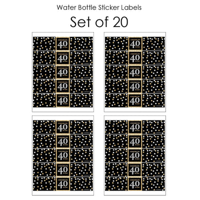 Adult 40th Birthday - Gold - Birthday Party Water Bottle Sticker Labels: