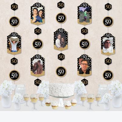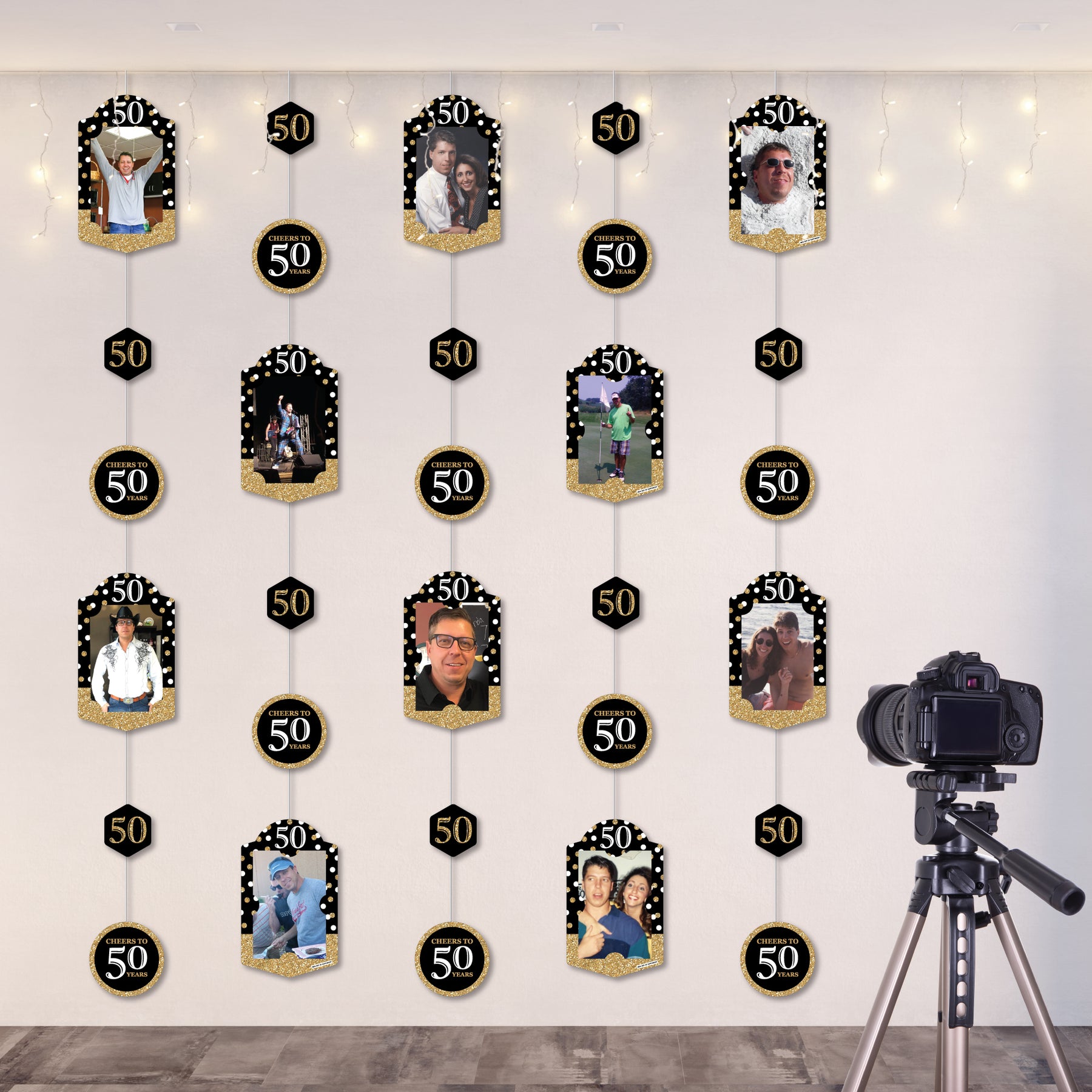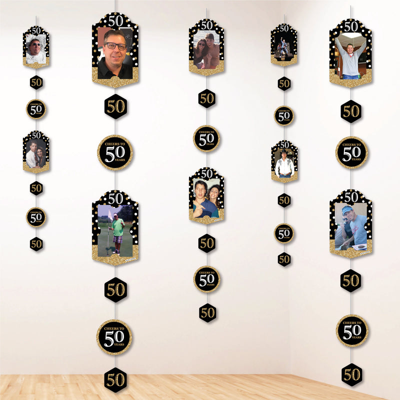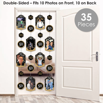 50th Birthday Gold Hanging Vertical Photo Garland - 35 Pc