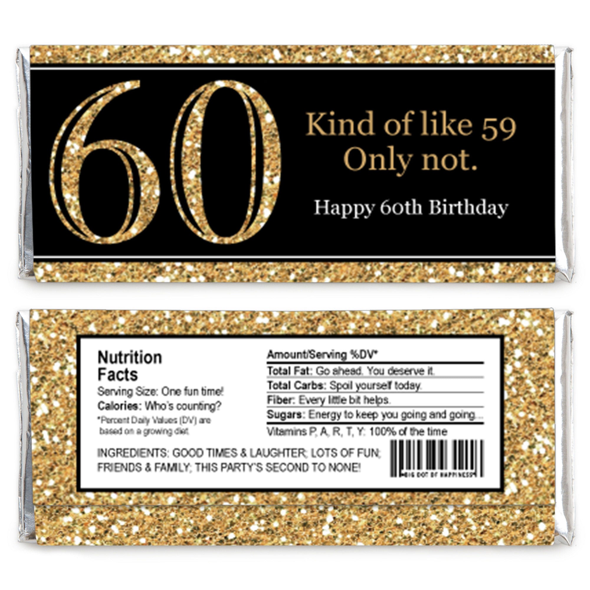Adult 60th Birthday - Gold - Birthday Party Candy Bar Wrapper Favors: