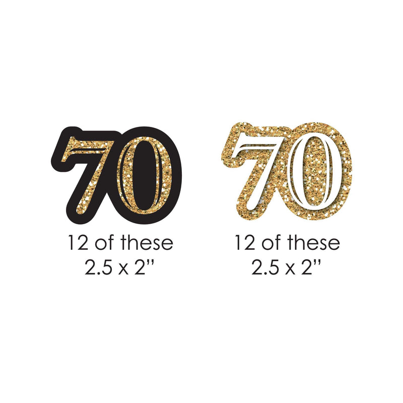 Adult 70th Birthday - Gold paper embellishment cut-outs are an easy way to decorate for your birthday celebration. This set of 24 paper die cut shapes are made from heavy card stock and will make all of your birthday party craft ideas perfectly coordinate with the Adult 70th Birthday - Gold party theme. Shaped paper cut outs can be attached to a toothpick and used as cupcake picks, glued to straws for a fun beverage bar or scattered like table decoration confetti. They can even be used afterward as scrapbook embellishments when you make your party pages! This set of Adult 70th Birthday - Gold paper cut outs comes with two different shapes to make your do-it-yourself birthday party crafts especially YOU-nique!