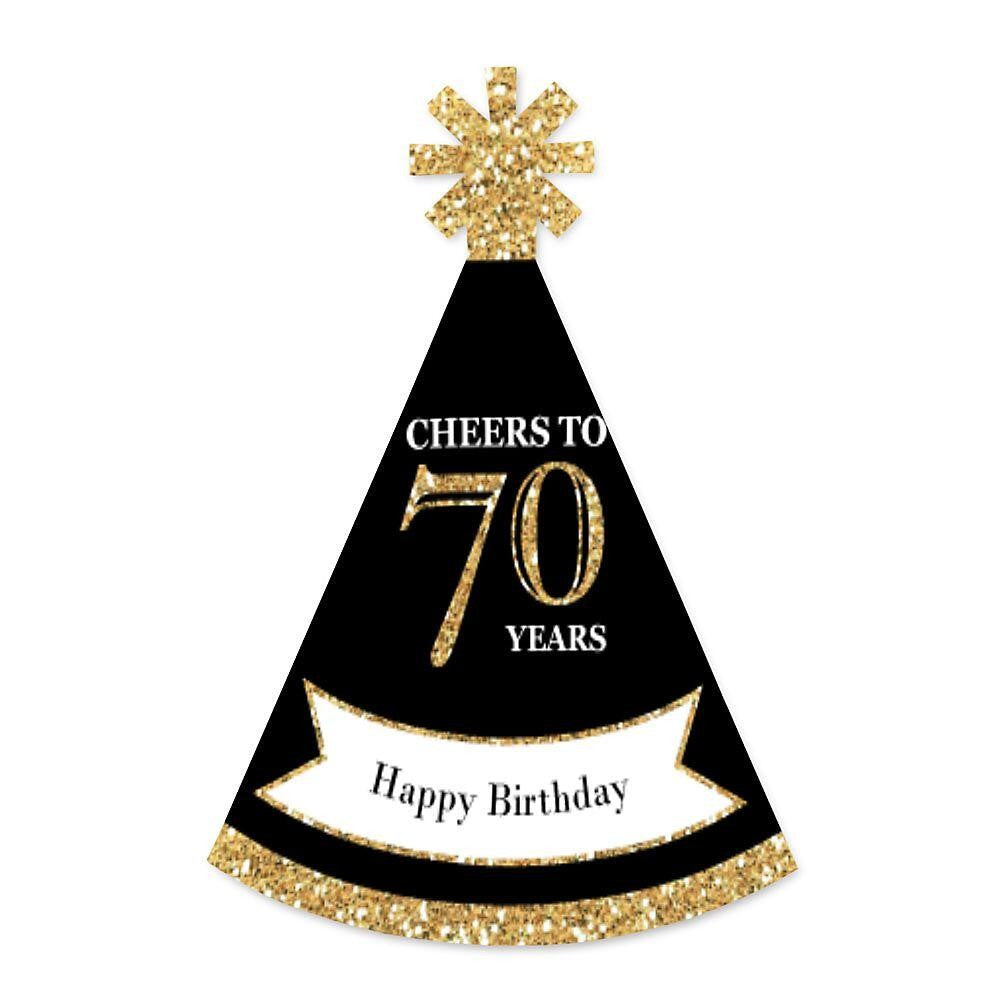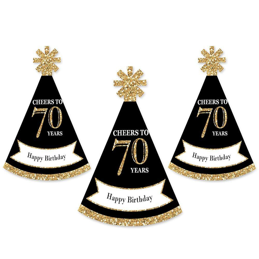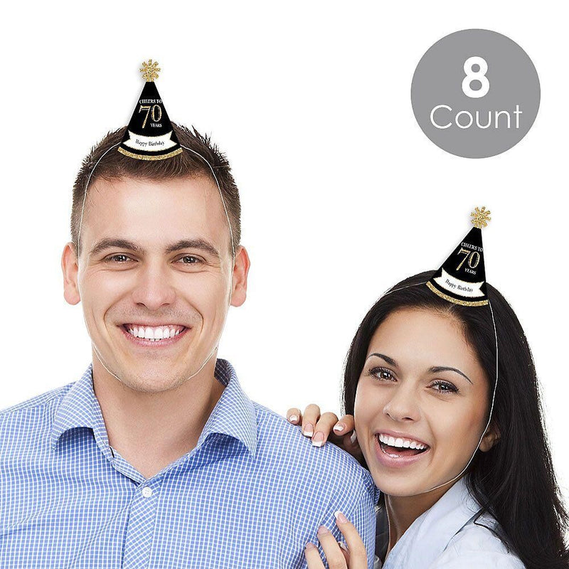 Everyone will be in the mood to celebrate when they are wearing an Adult 70th Birthday - Gold mini party hat. This Set of 8 party accessories is a great addition to your event and is sure to get everyone smiling! Each Adult 70th Birthday - Gold Small Little Party hat is perfectly themed and has a festive star at the top. Be sure to have your camera ready because these Adult 70th Birthday - Gold mini party hats are going to give you some great holiday photos!