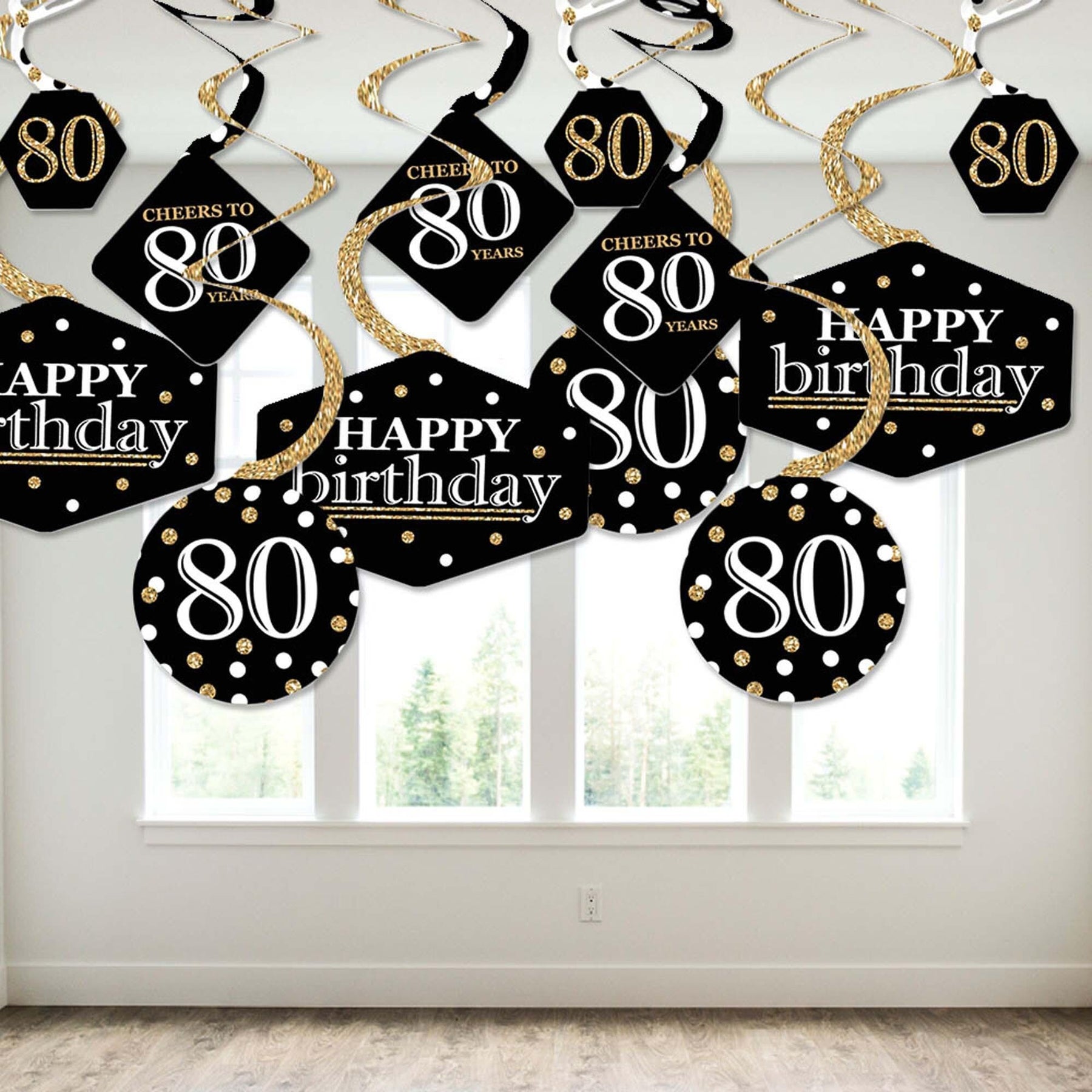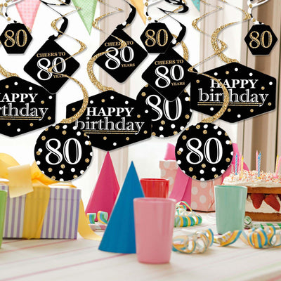 Adult 80th Birthday - Gold - Birthday Party Hanging Decor - Party Decoration Swirls - Set of 40: