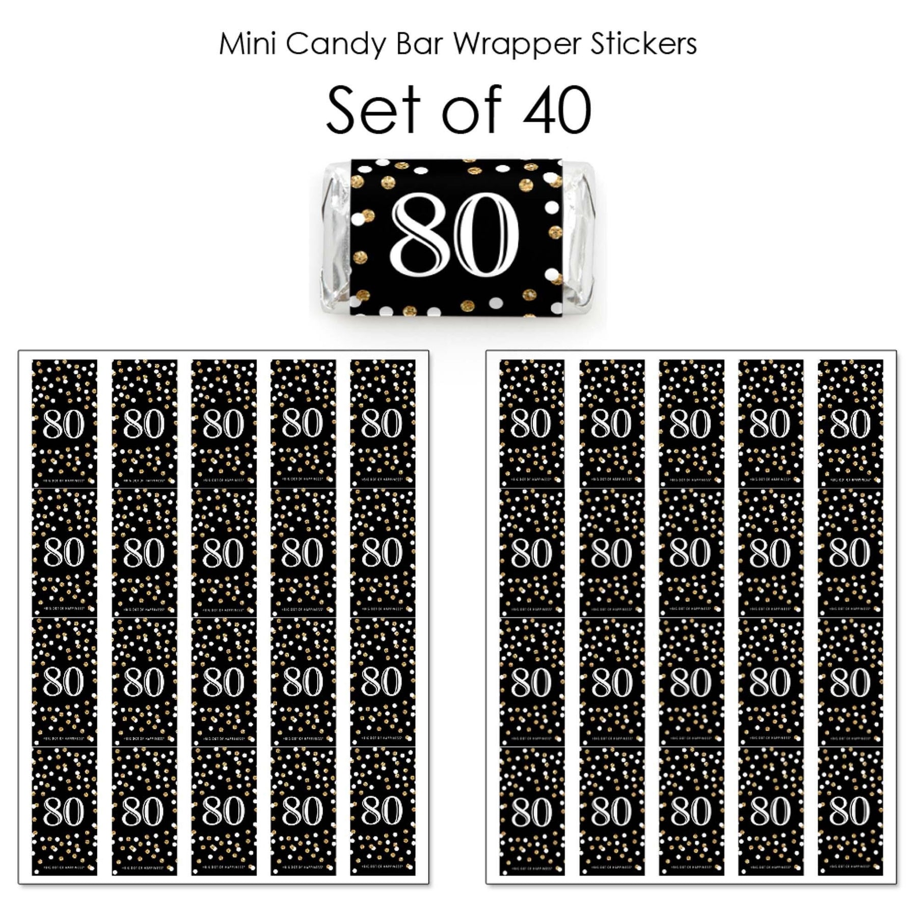80th Birthday Gold Mini Candy Bar Stickers - 40 Ct
