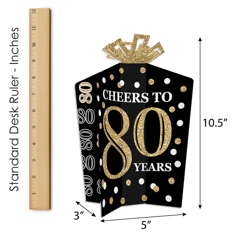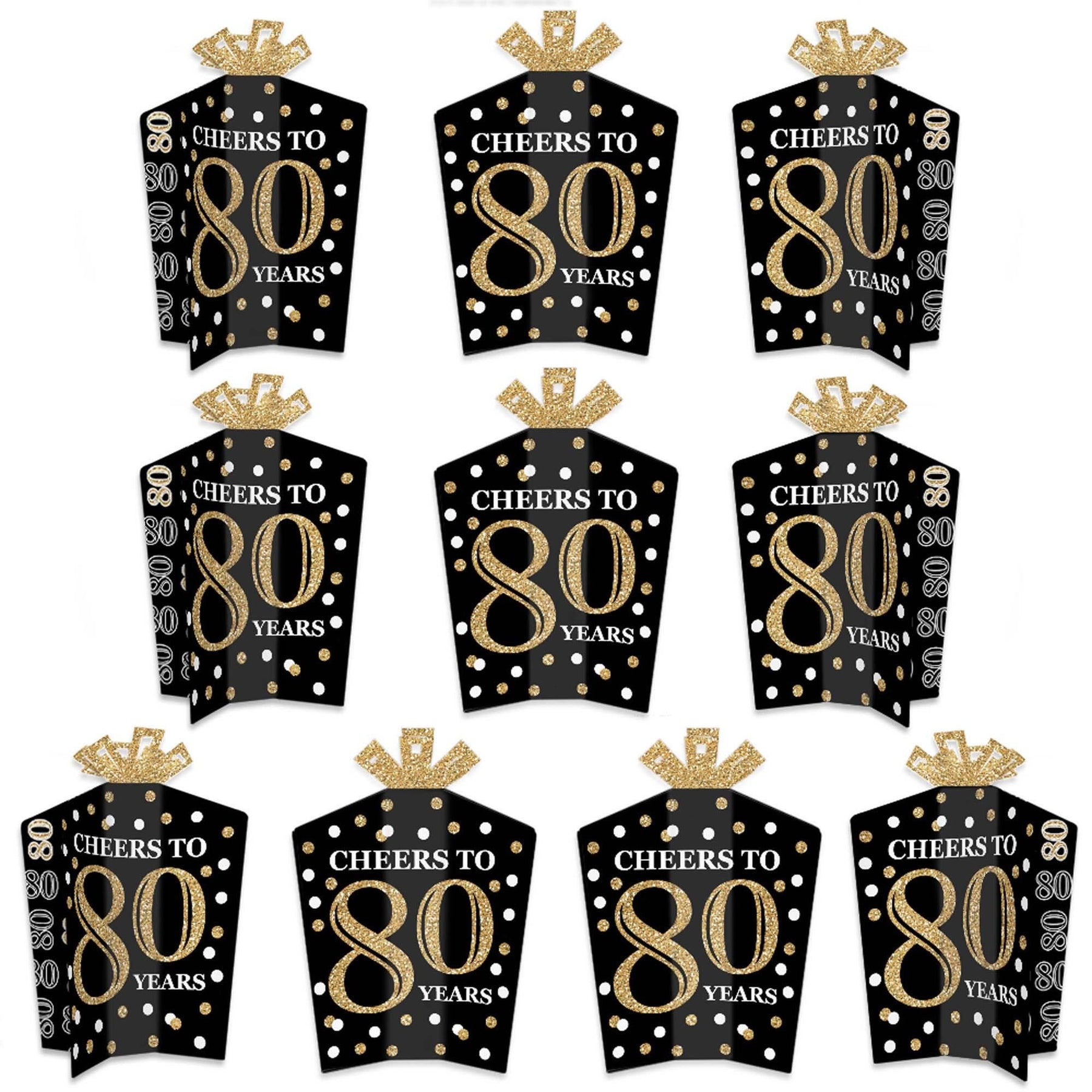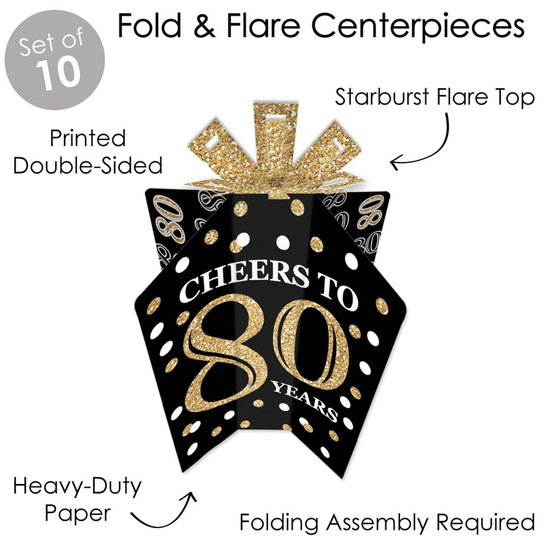 Adult 80th Birthday - Gold - Table Decorations - Birthday Party Fold and Flare Centerpieces - 10 Count