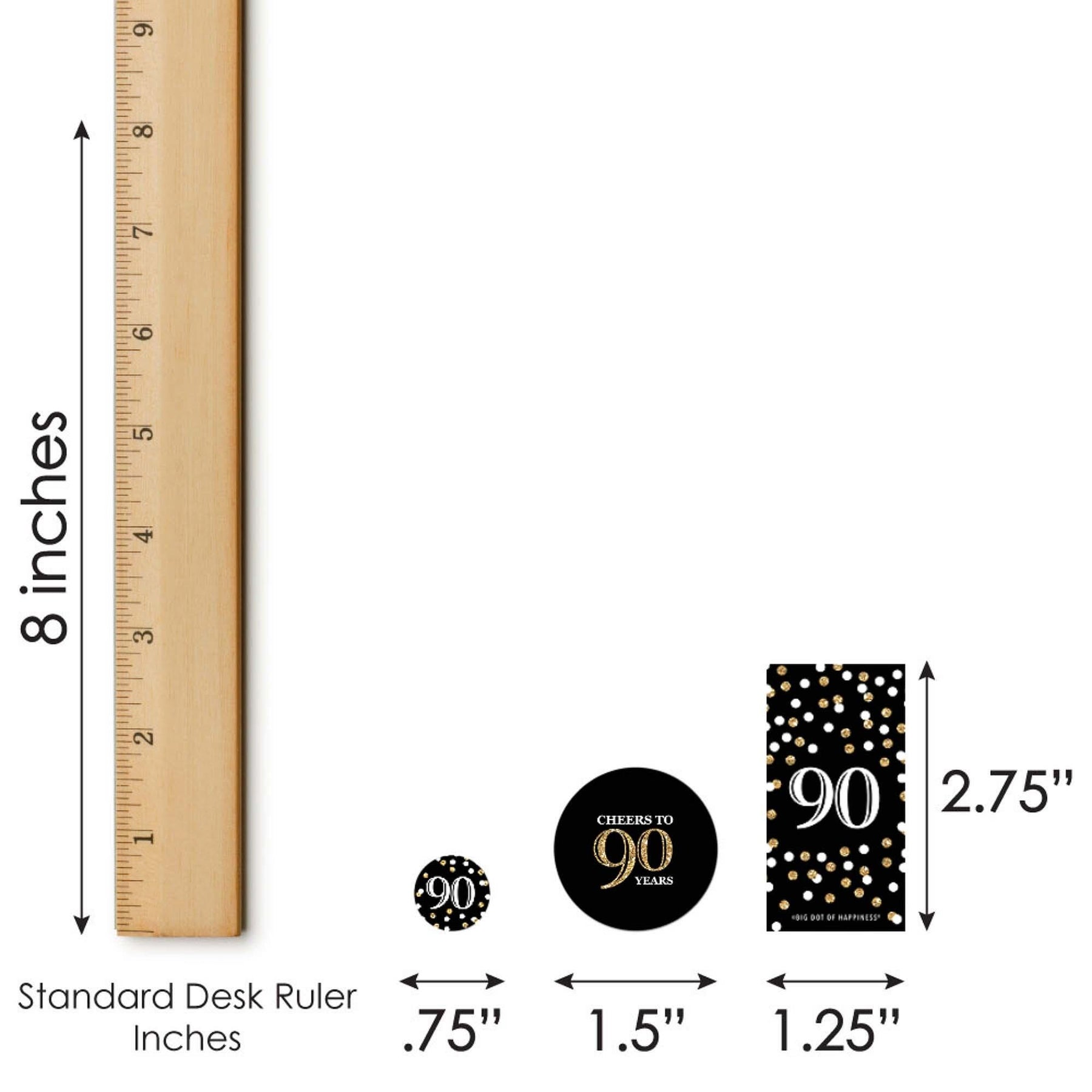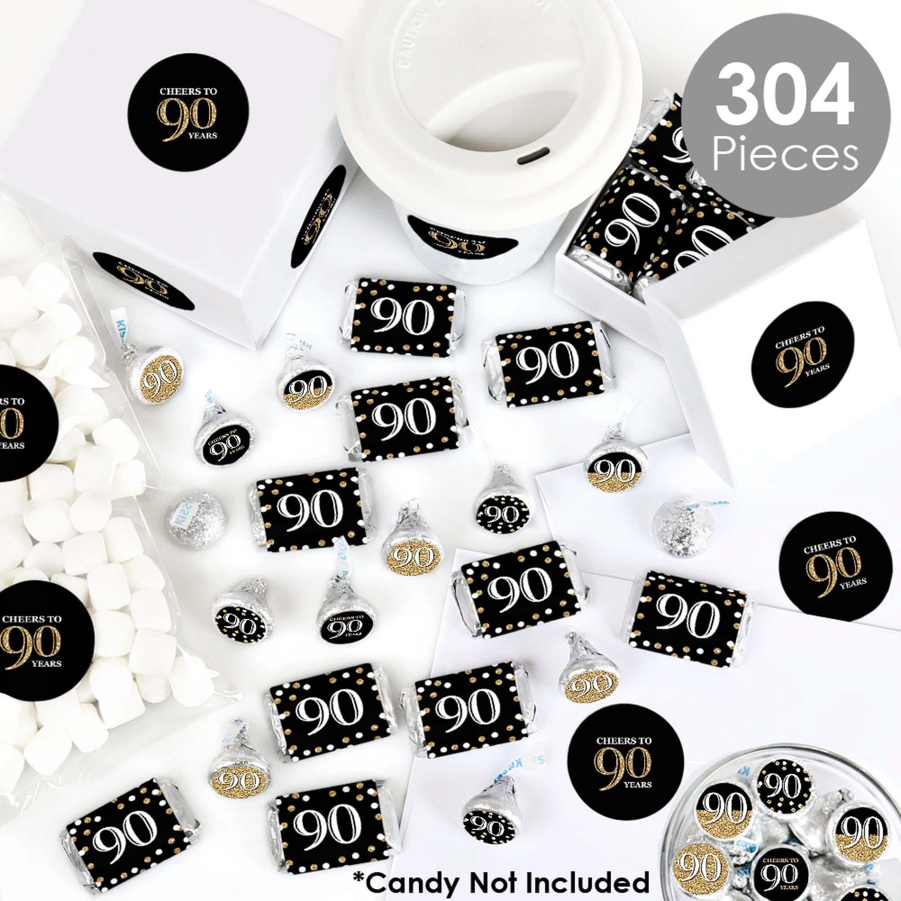 Adult 90th Birthday - Gold - Mini Candy Bar Wrappers, Round Candy Stickers and Circle Stickers - Birthday Party Candy Favor Sticker Kit - 304 Pieces