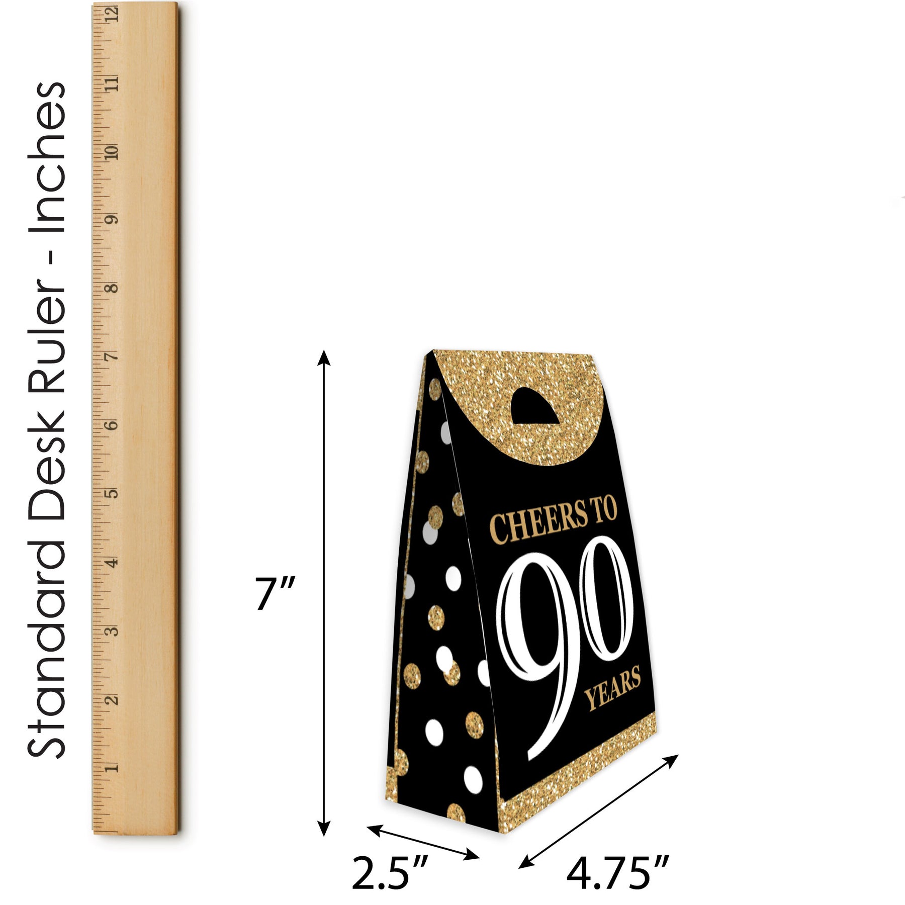 From small treats to trinkets and gifts, thrill your guests with the Adult 90th Birthday - Gold Party Goodie Bags! Ideal for your Birthday Party, these party loot bags measure to be 4.75” long x 2.5” wide x 7” tall and will certainly be a delight at your celebration. The Adult 90th Birthday - Gold party bags come in a set of 12 and are professionally printed double-sided on sturdy cardstock paper with some easy DIY assembly required. Each favor bag includes creased lines and numbered tabs for easy folding. To close the bag, fold over the top flap and insert the tab inside the slit to secure it shut. Packaging will also include assembly instructions. Fill these swag bags with small surprises inside and place them at your dessert table for guests to grab and take home. Make your celebration complete when you delight your guests with the Adult 90th Birthday - Gold Party Goodie Bags.