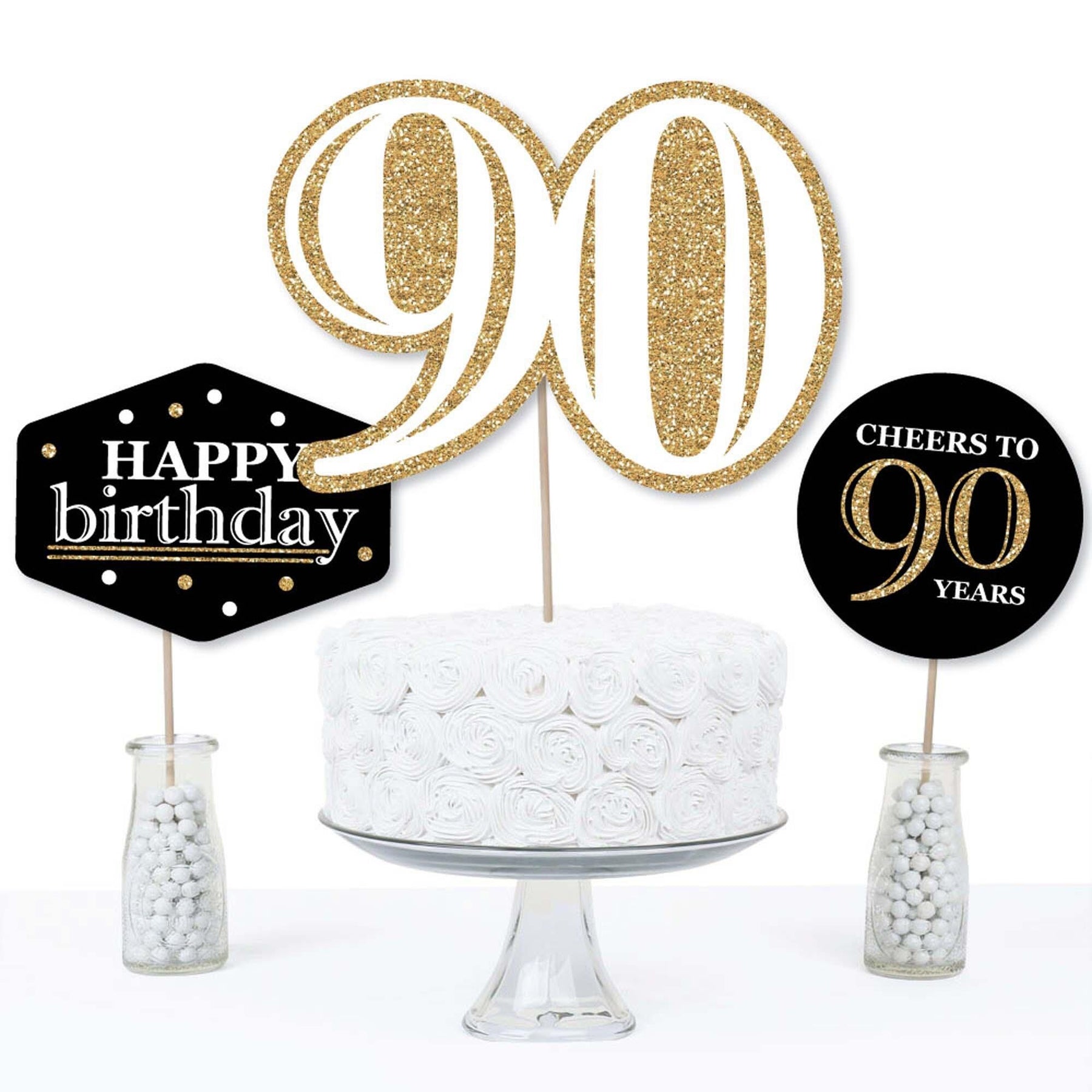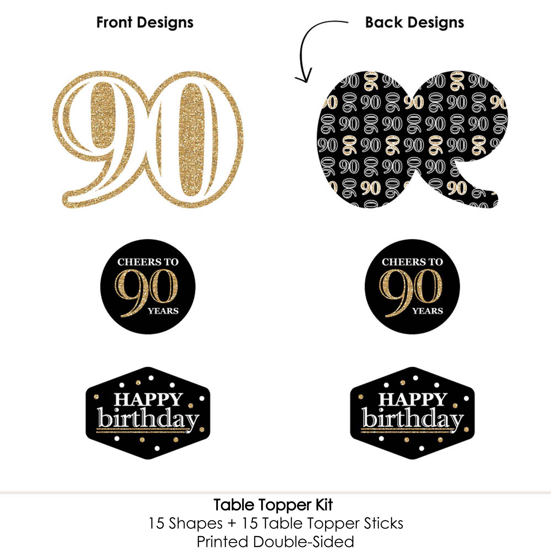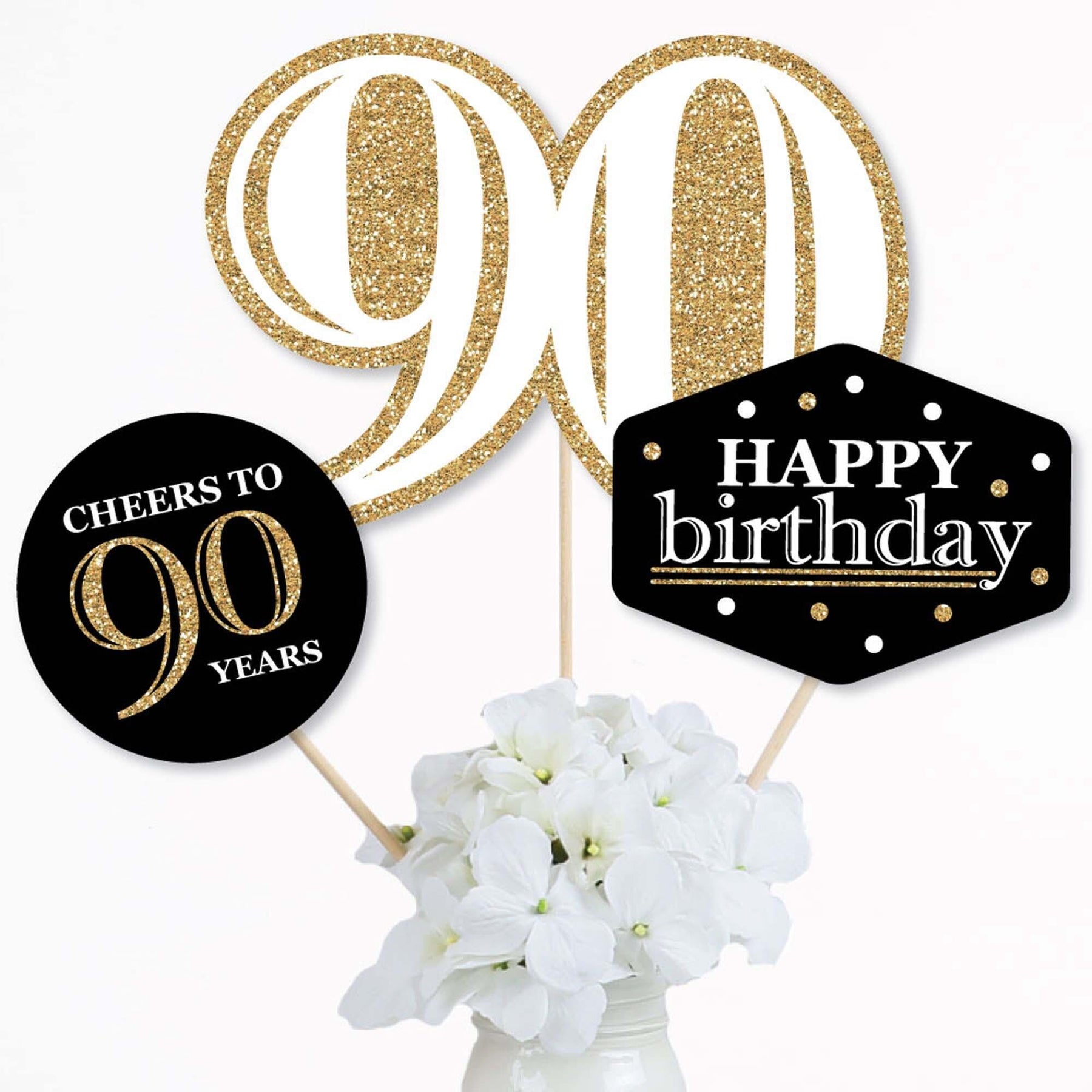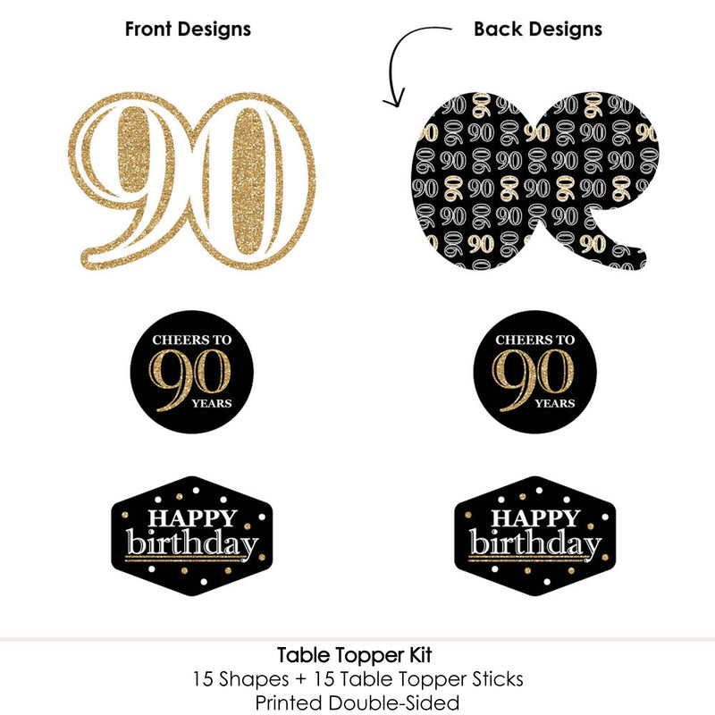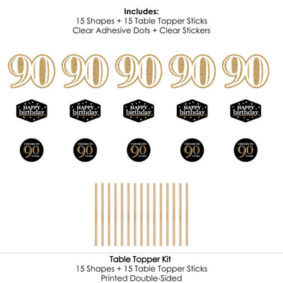 Bring your birthday party theme to all areas of the celebration with Adult 90th Birthday - Gold - Birthday Party Table Toppers. Each heavy-duty cardstock paper cutout quickly attaches to the included table topper sticks to create centerpiece sticks that can be used in vases or floral arrangements at all your party tables. You can even add them to candy jars at your goodie table! Adult 90th Birthday centerpiece sticks may also be used as photo booth props. You will love how versatile this fun party supply is while your guests will adore seeing them throughout your party venue. Get creative with this set of 15 table toppers and have a truly YOU-nique celebration.